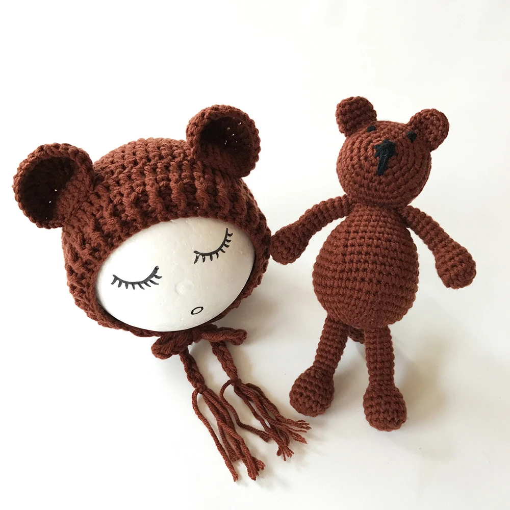 От 0 до 2 месяцев вязаный шерстяной вязаный костюм унисекс для новорожденных девочек и мальчиков, вязаный крючком Детская шапка-медвежонок