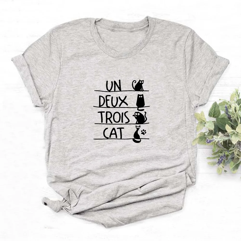 Забавная футболка Un Two Three Cat, женские милые футболки, Хлопковая женская футболка с круглым вырезом, женский топ, белая футболка, женская футболка