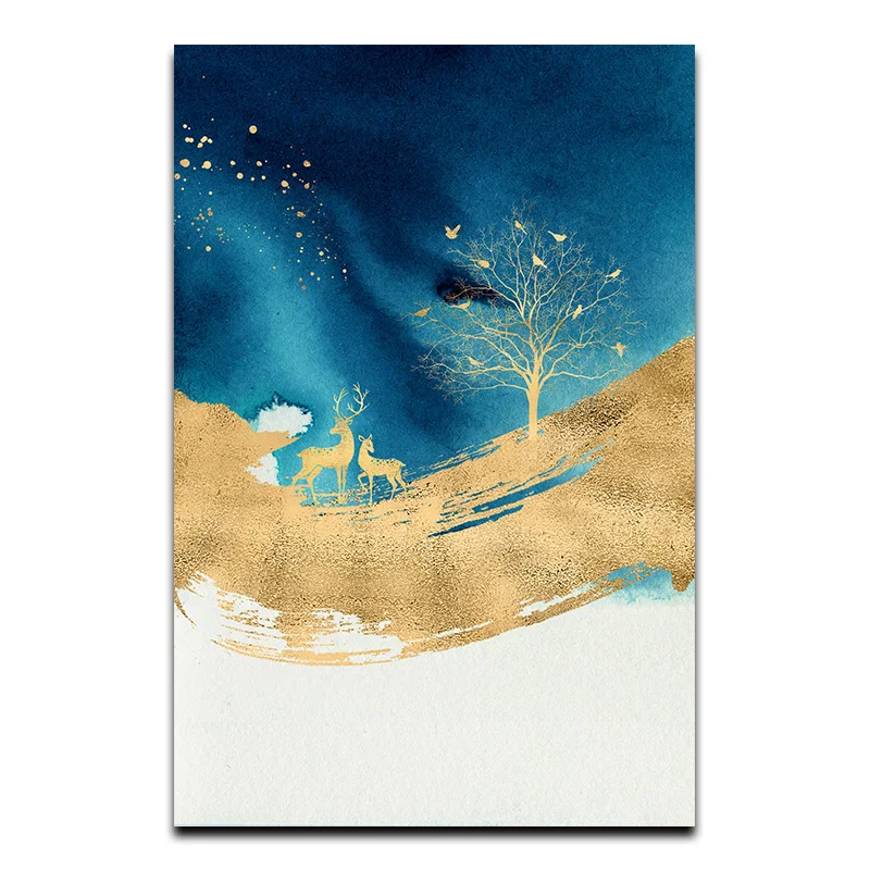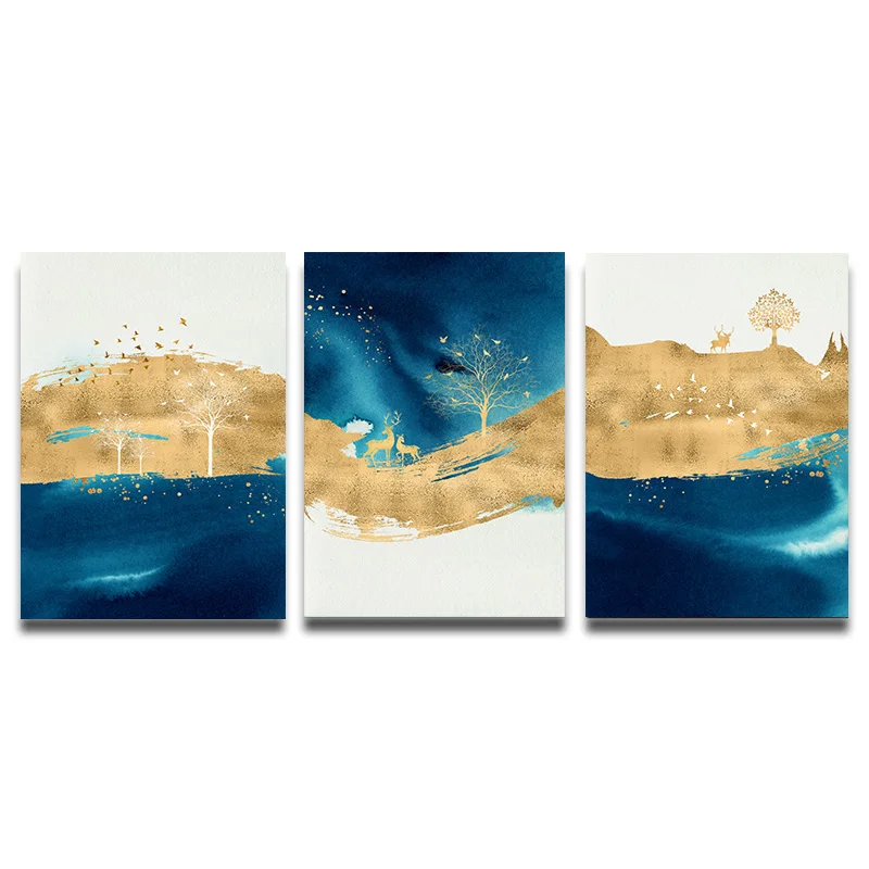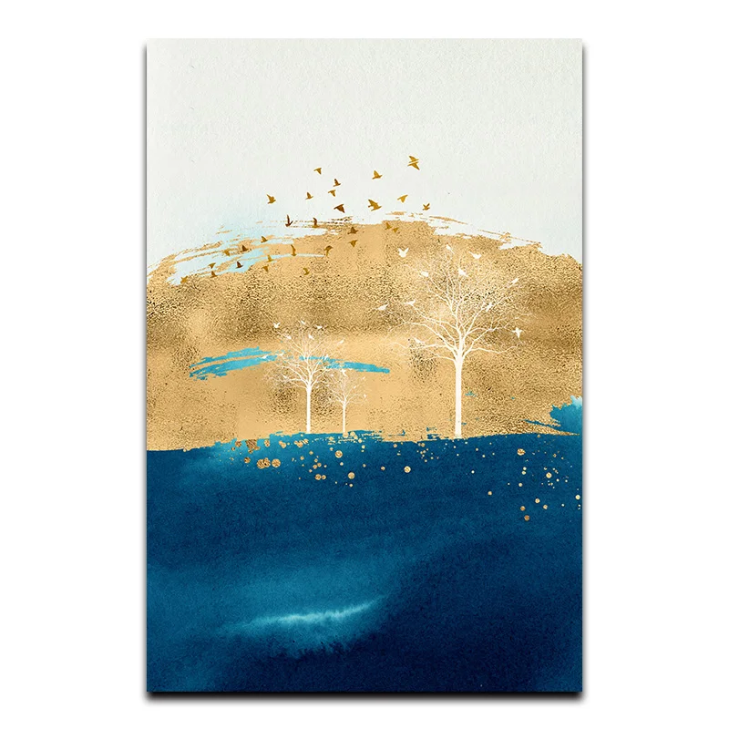 Абстрактная картина из золотой фольги, синий плакат, Современная Зо...