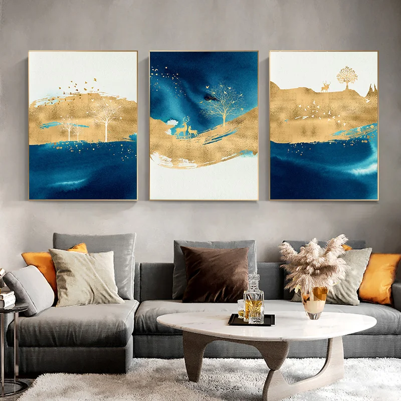 Абстрактные синие креативные картины на холсте морской пейзаж посте...