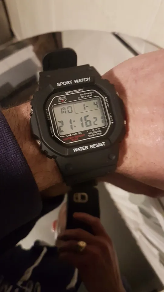 Всего 18 дней от дня заказа до его прибытия. Как сказали другие, мужская модель действительно огромная, и отрицательный дисплей трудно прочитать. Это все еще большая покупка менее 8 евро. Я рекомендую :)