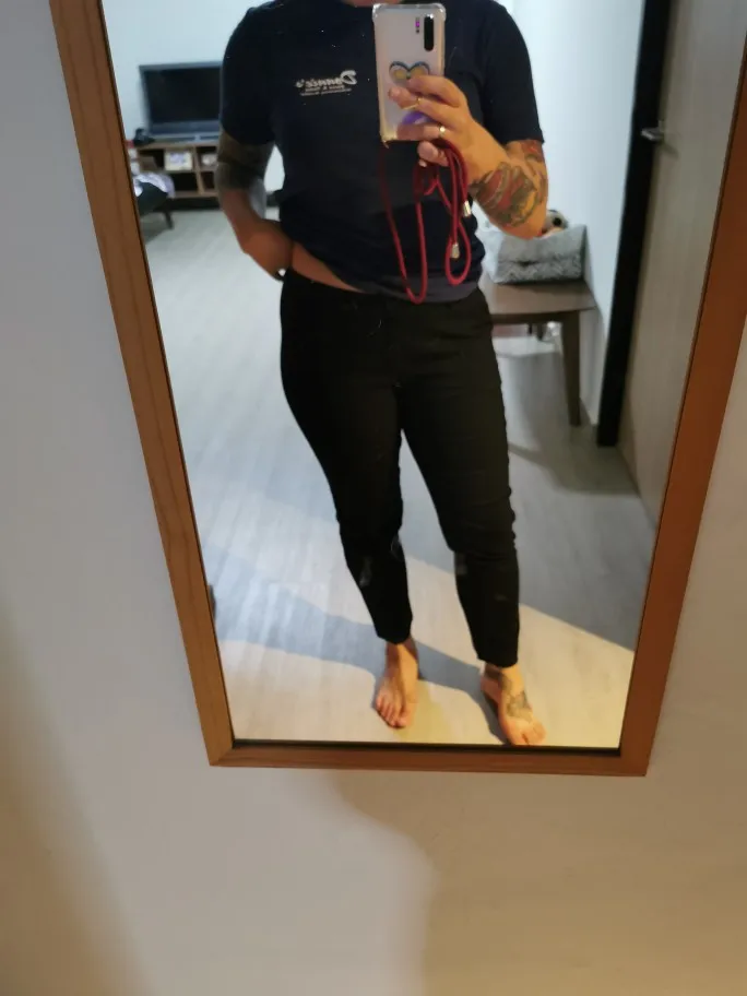 Прекрасный и лестно обрезан и подходит. Средний подъем. Мои размеры: талия 82, бедра 104. Материал тоже приятный и имеет удобное растягивание, чтобы сгибаться или приседать, а не пышный. Для доставки требуется всего месяц. Я заказываю больше!