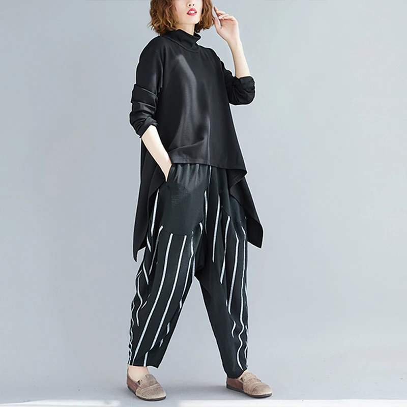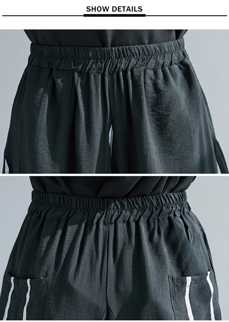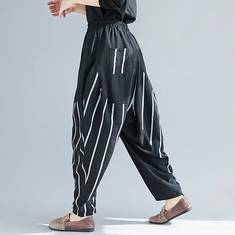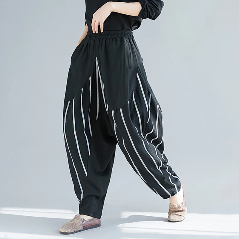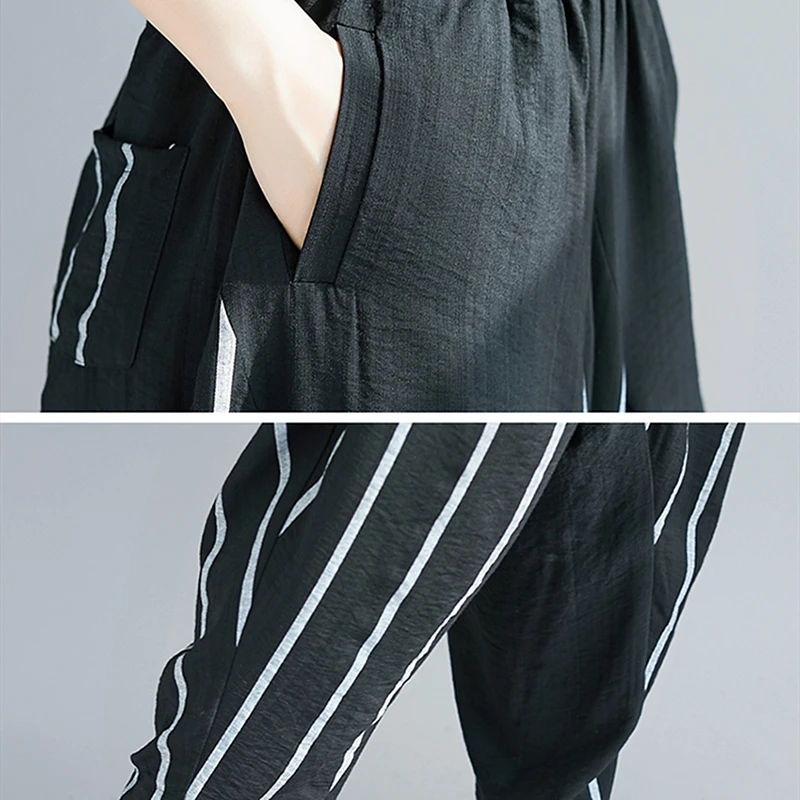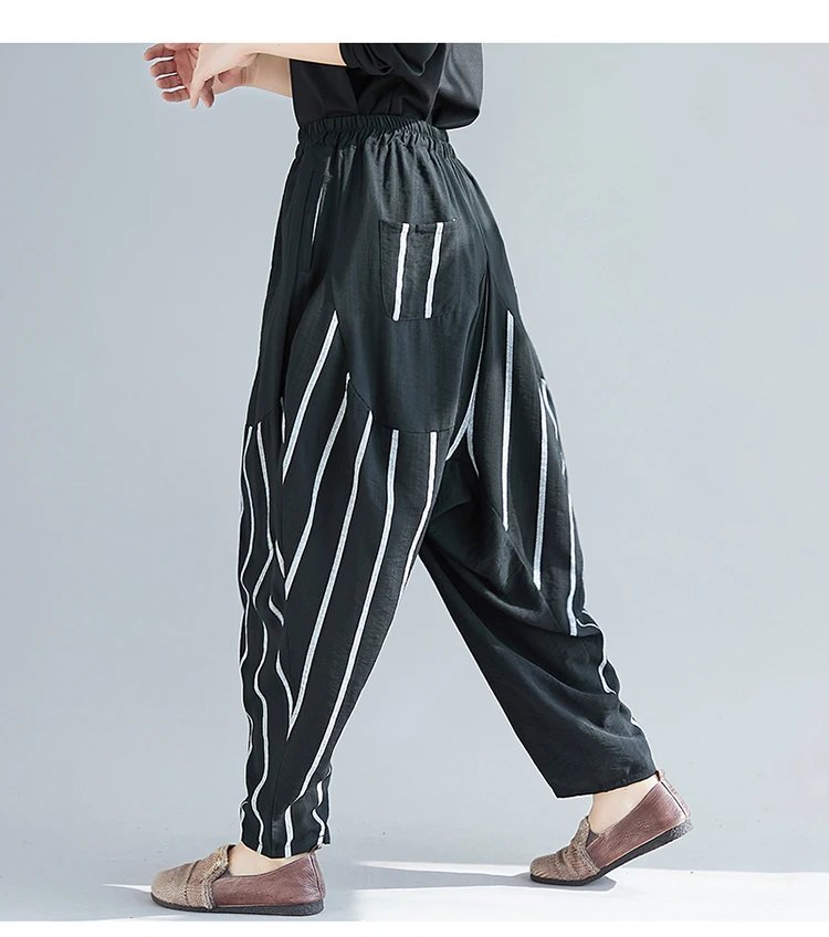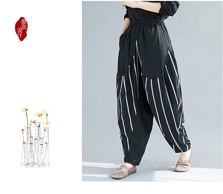 Женские шаровары из хлопка и льна, винтажные черные свободные повседневные с высокой талией, большого размера, 2021, на весну, размера плюс