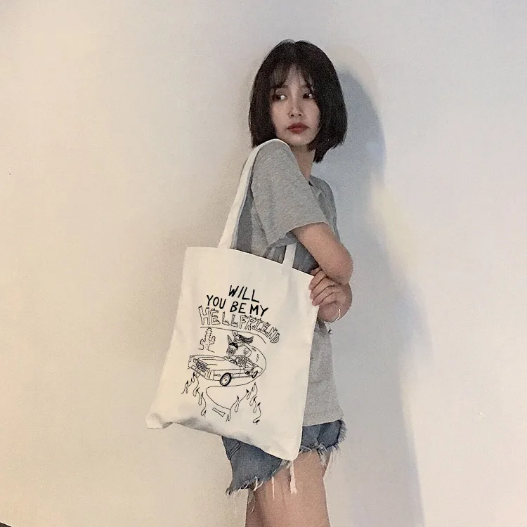 Винтажная Холщовая Сумка-тоут Harajuku для женщин, сумка на плечо с...