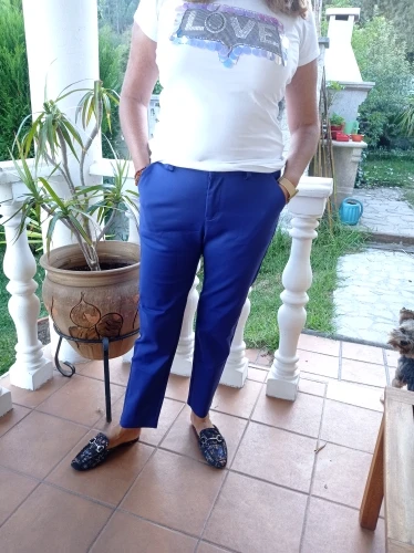 Идеально: цвет голубоватый, плотная и эластичная ткань, размеры подходят для моего размера 42, они соответствуют таблице размеров. Длина достигает лодыжки. Быстрая доставка и сердечный продавец. Я рад. Я рекомендую его.