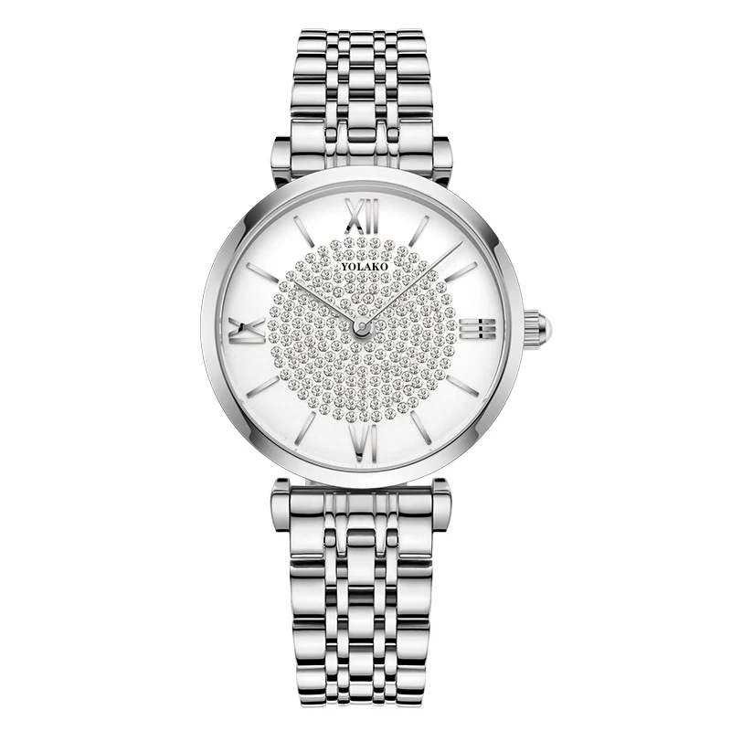 Часы женские кварцевые с круглым циферблатом, из нержавеющей стали