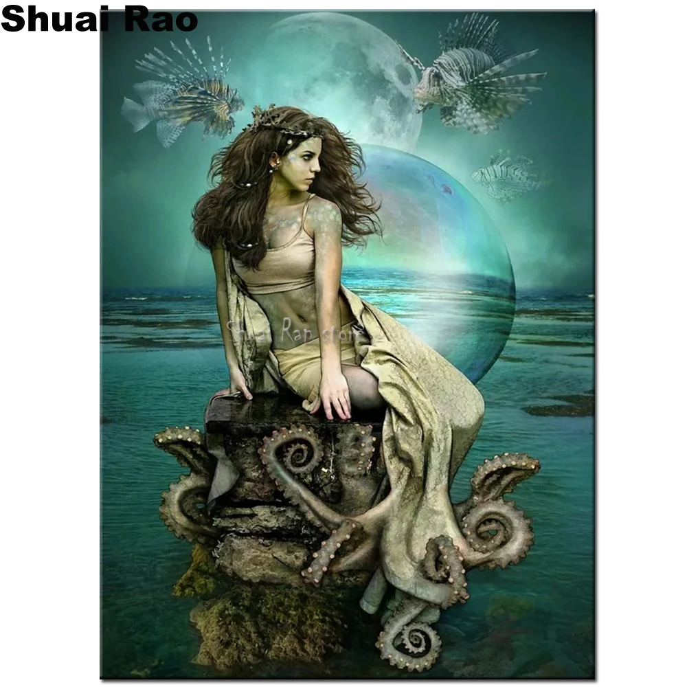Осьминог, Фэнтези Арт, алмазная вышивка "Русалка" полная круглая/квадратная алмазная живопись 5d diy пазл наклейки на стену украшение дома