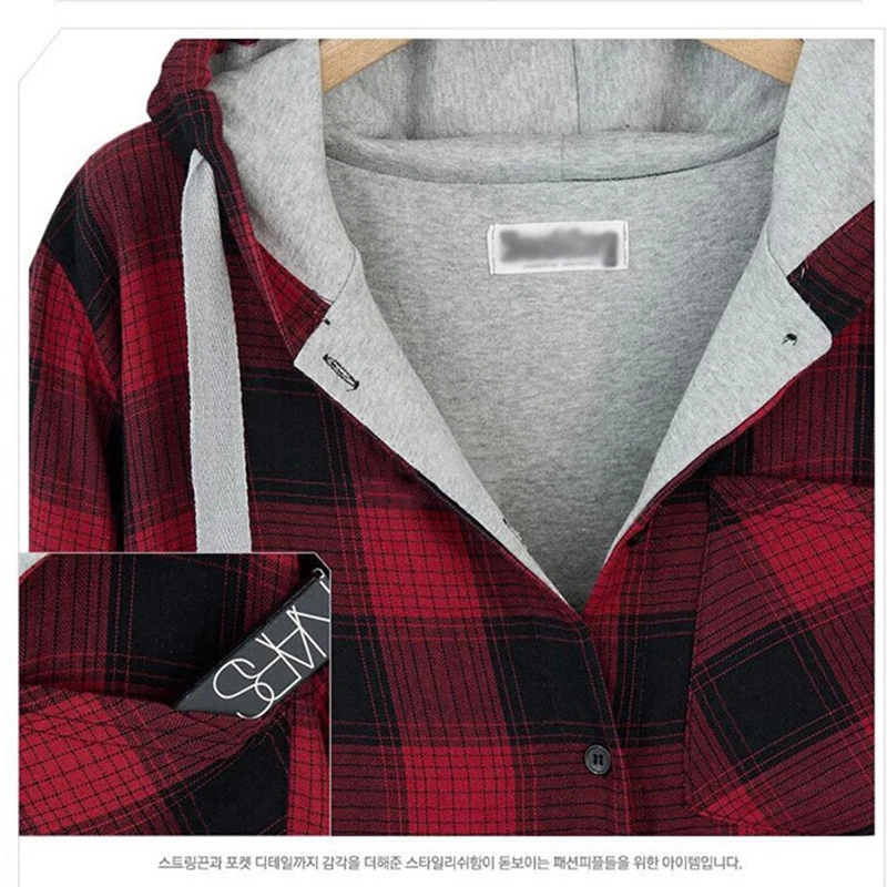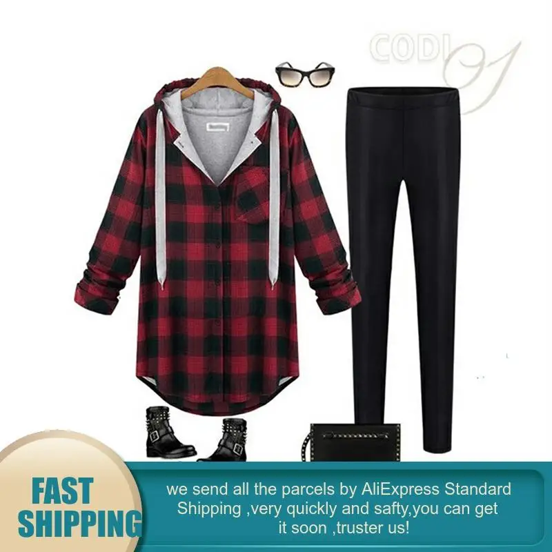Женская толстовка с капюшоном, в клетку, с длинным рукавом