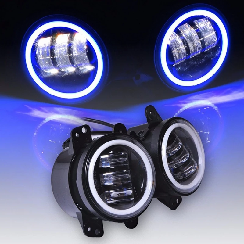 2 шт. 4-дюймовые круглые светодиодные противотуманные фары 30 Вт 6000 К, белый ореол, кольцо DRL, противотуманные фары для Jeep Wrangler JK TJ LJ Grand Cherokee