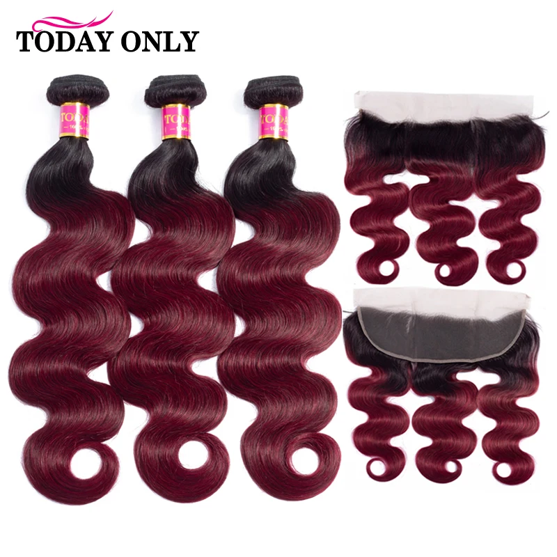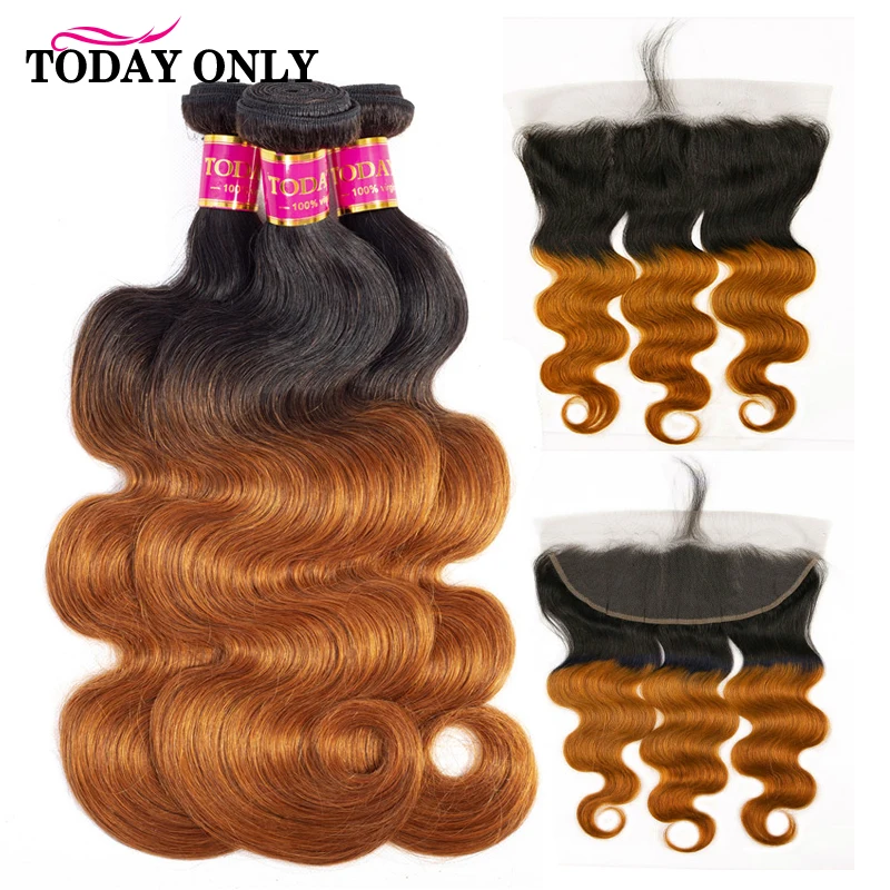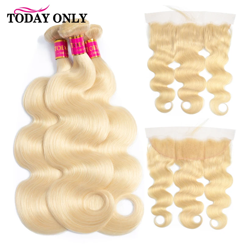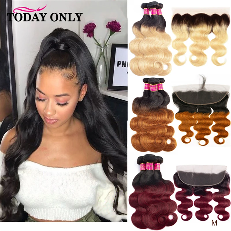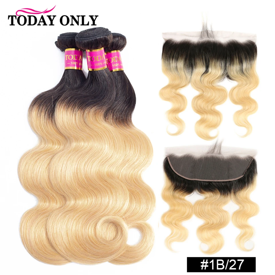 Пряди натуральных волос с эффектом омбре, бразильские пряди волнистых волос медовый блонд, 613 объемные волнистые пряди с фронтальной бордовой Реми