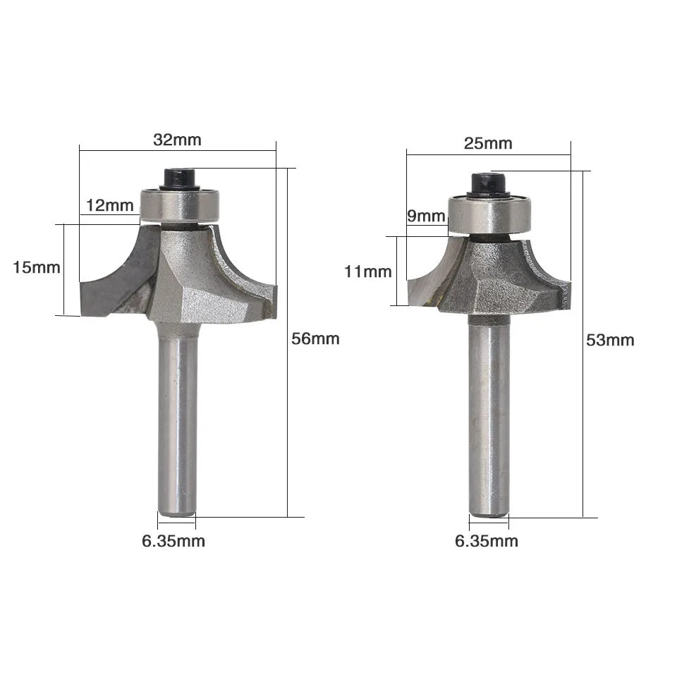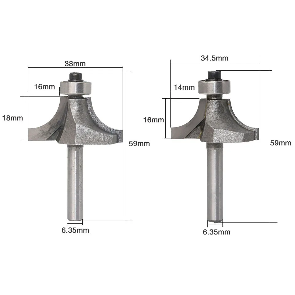 4 шт.компл. 14 "6,35 мм хвостовик Фрезерный резак резьба по дереву Радиус Круглый над краями фрезерный станок фреза для работы по дереву