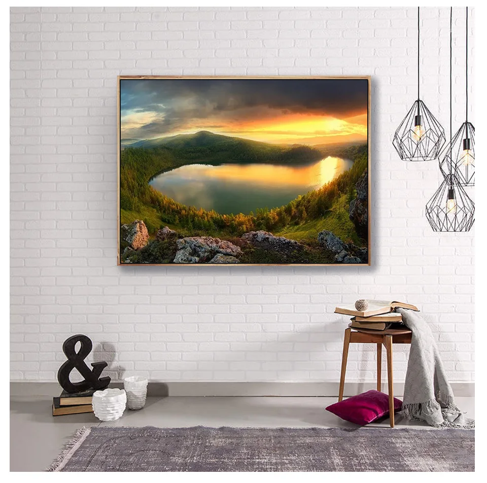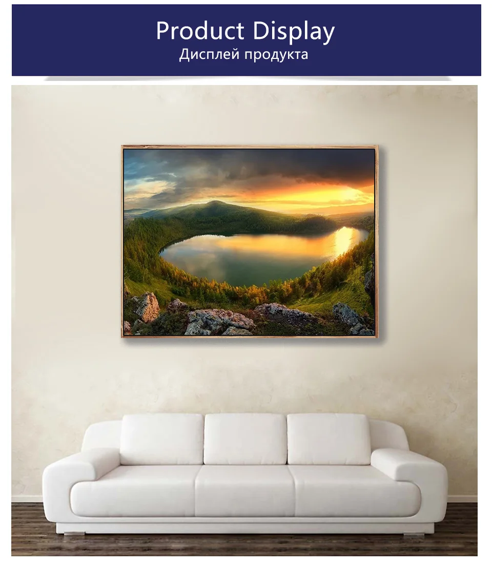 Алмазная вышивка, картина 5D сделай сам с полными квадратными и круглыми стразами, с изображением озера и заката