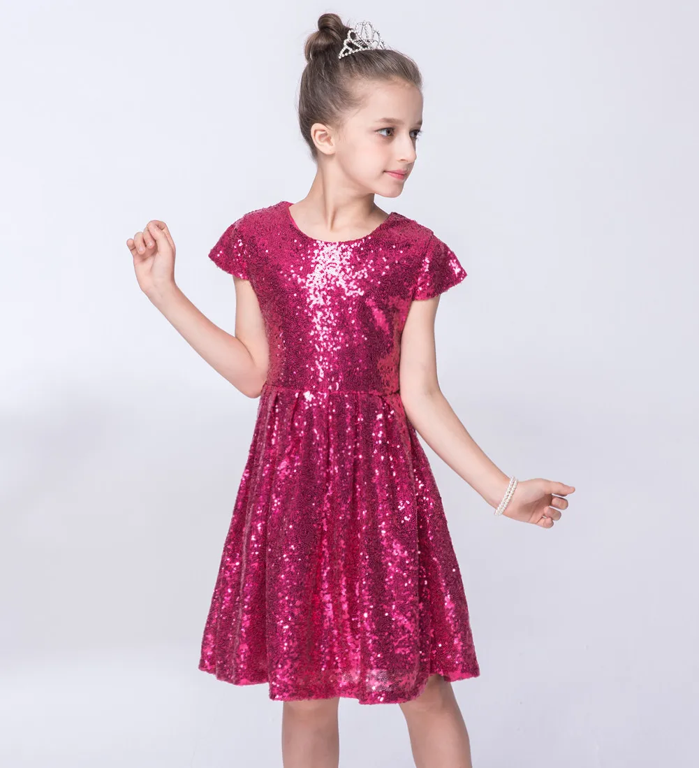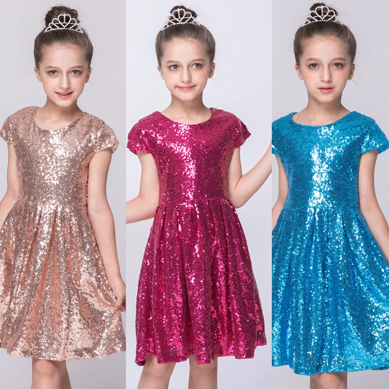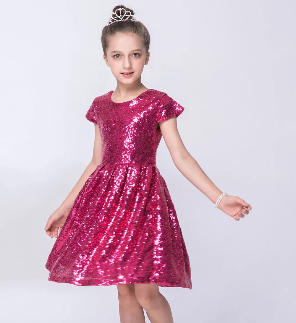 INS2020 модное платье для девочек; платье с блестками и короткими рукавами; вечерние платья; блестящая эксклюзивная одежда принцессы; цвет золотой, розовый, красный