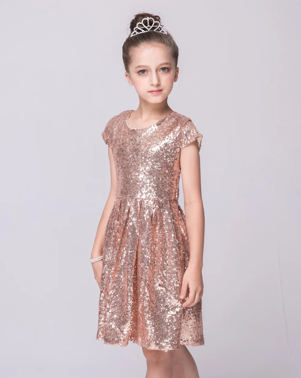 Модное платье для девочек, с блестками, с коротким рукавом, вечерне...