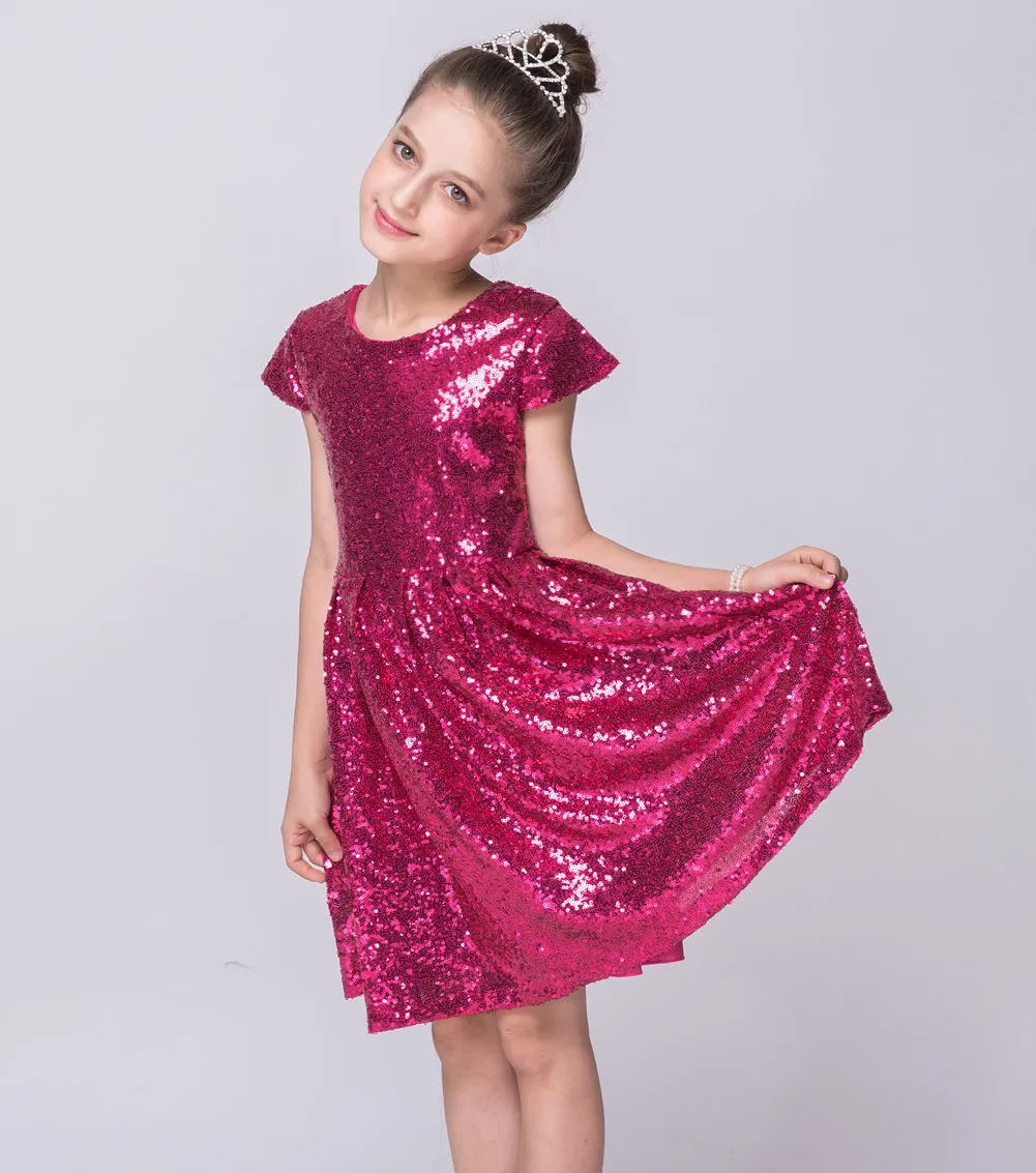 Модное платье для девочек, с блестками, с коротким рукавом, вечернее платье, блестящая бутиковая одежда для принцесс, цвет золотистый, розовый, красный, 2020