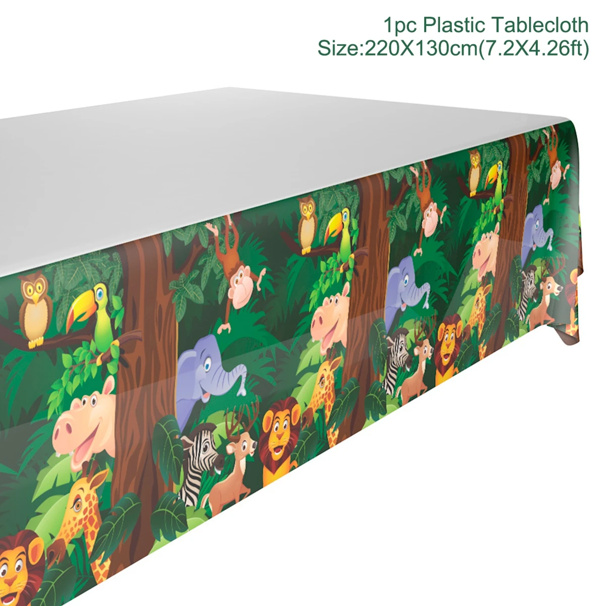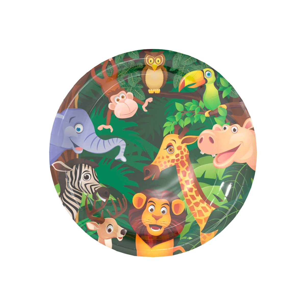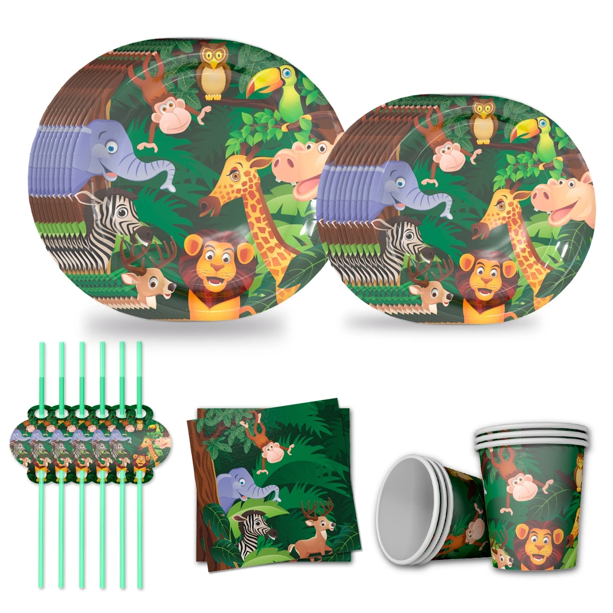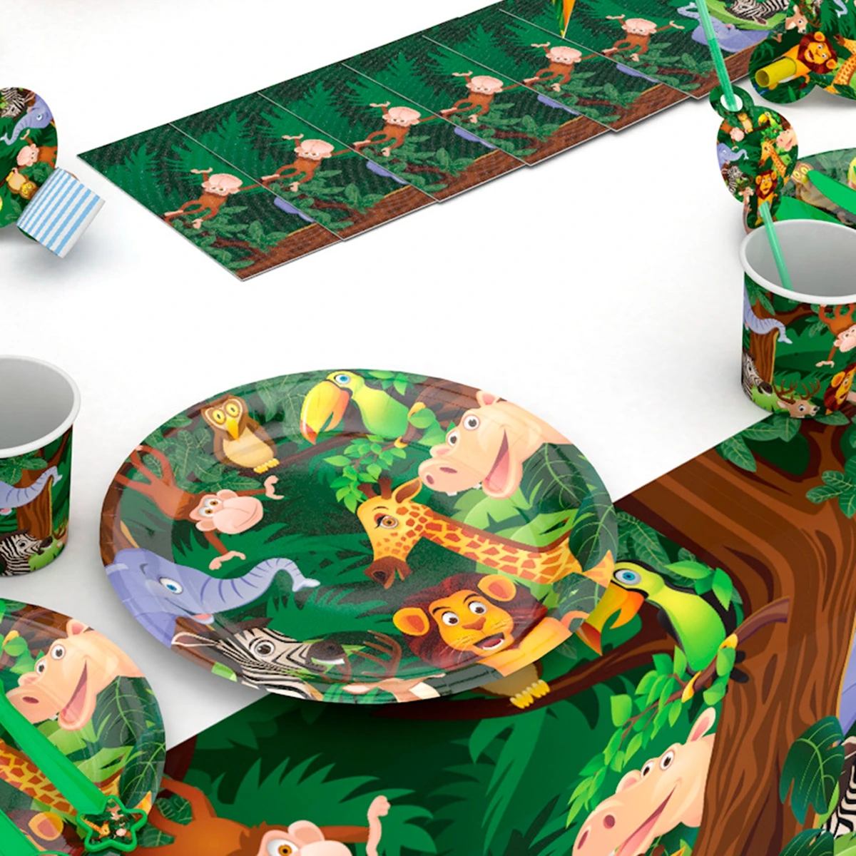 Одноразовые тарелки в виде животных из джунглей, столовые приборы в...
