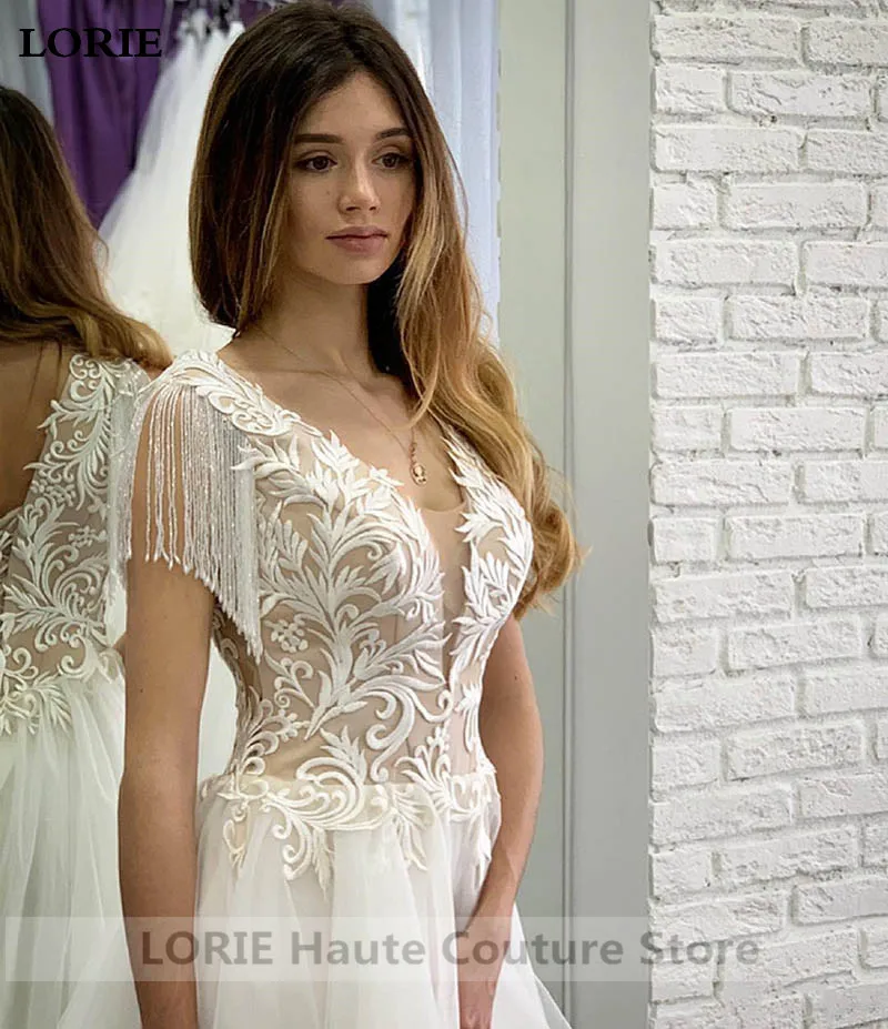 Женское свадебное платье в стиле бохо LORIE, ТРАПЕЦИЕВИДНОЕ ПЛАТЬЕ С бахромой и V-образным вырезом, корсет с аппликацией, свадебное платье