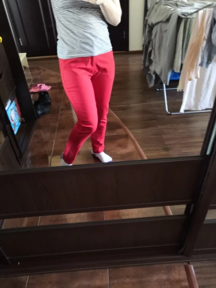 Так брюки нормальные, но разные цвета разные размеры. Допустим синие брала, в этом же размере, на мне идеально сидят, и ткань чуть плотнее. Белые потоньше и чуть свободней, также и красные) но в целом брючки хорошие, для разнообразия)