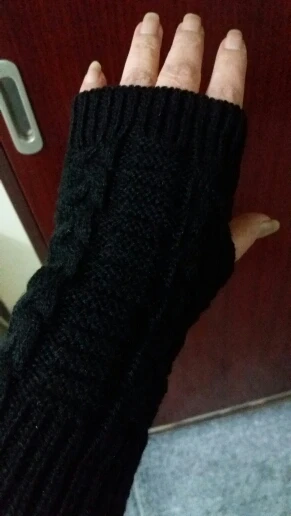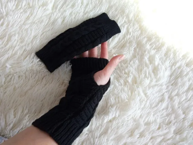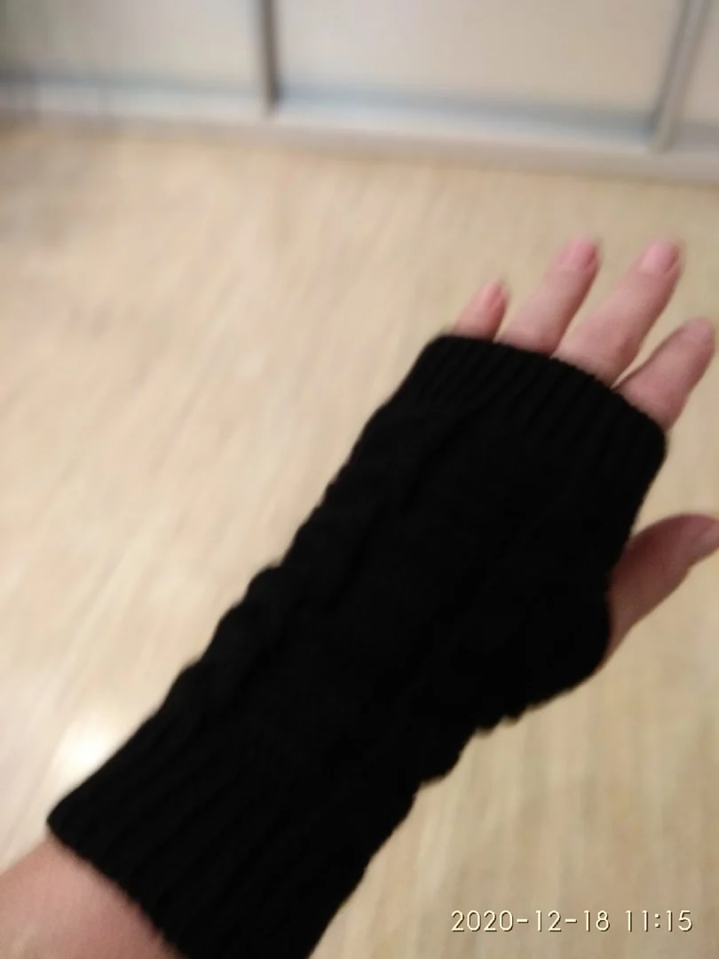 Зимние теплые перчатки для женщин, вязаные однотонные варежки без пальцев, плотные перчатки из искусственной шерсти