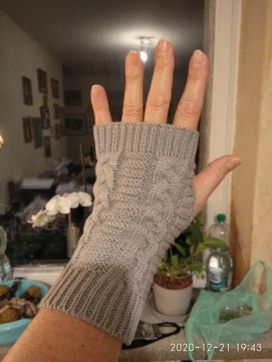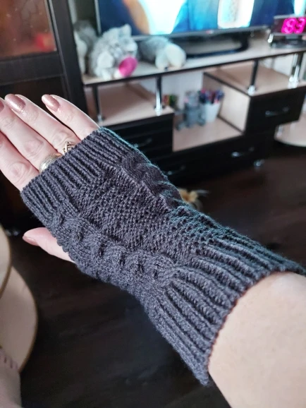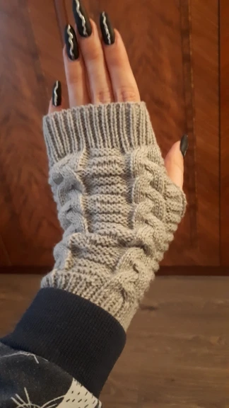 Очень красивые Серые вязаные перчатки без пальцев. Можно носить дважды: На большом пальце или нет-отверстие для большого пальца можно использовать как отверстие для часов... Очень быстрая доставка в Польшу-25 дней. Спасибо за покупку. Я рекомендую.