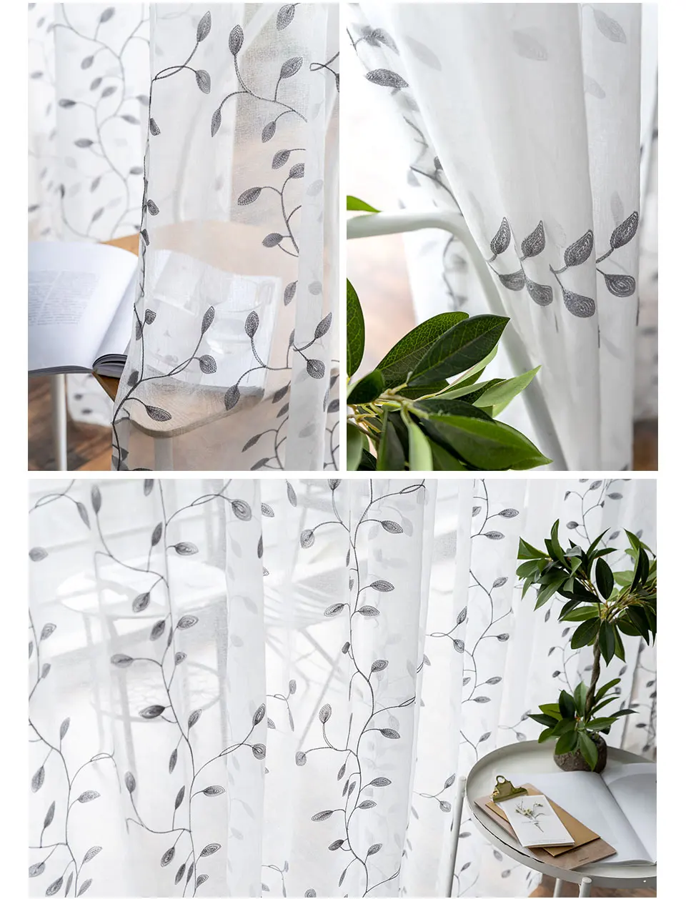 Тюлевые шторы с вышивкой в виде белых листьев, прозрачные Занавески для гостиной, спальни, кухни, современное домашнее украшение, вуаль, занавеска
