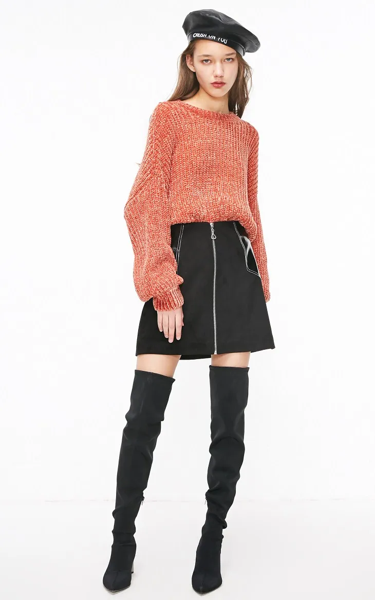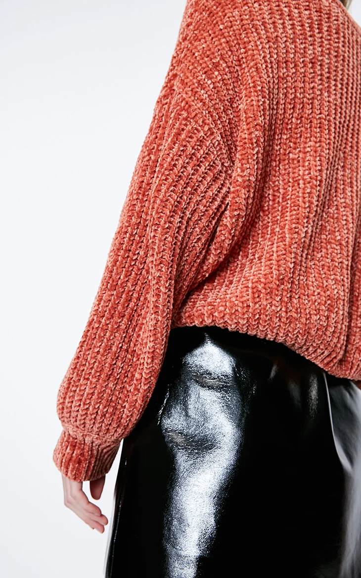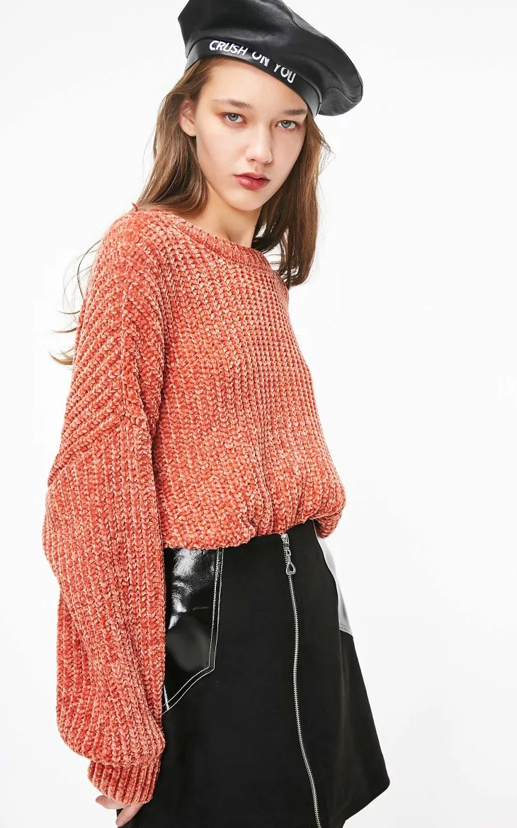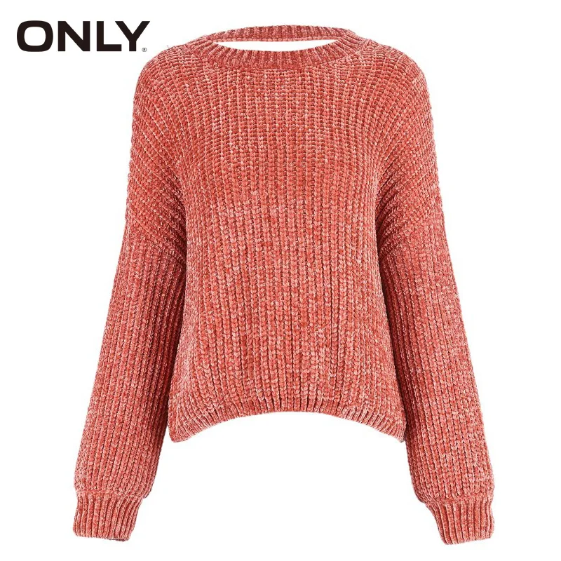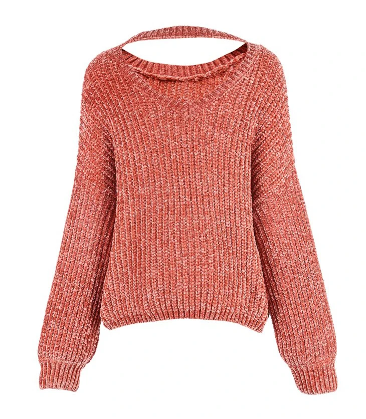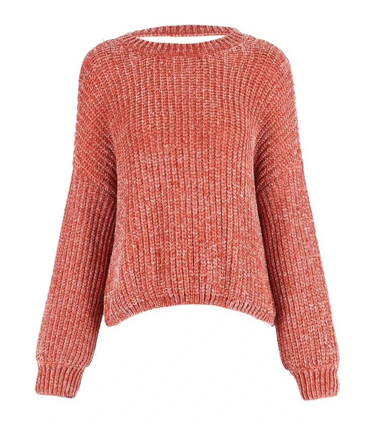 Женский свитер с открытой спиной и круглым вырезом из синели 119113525