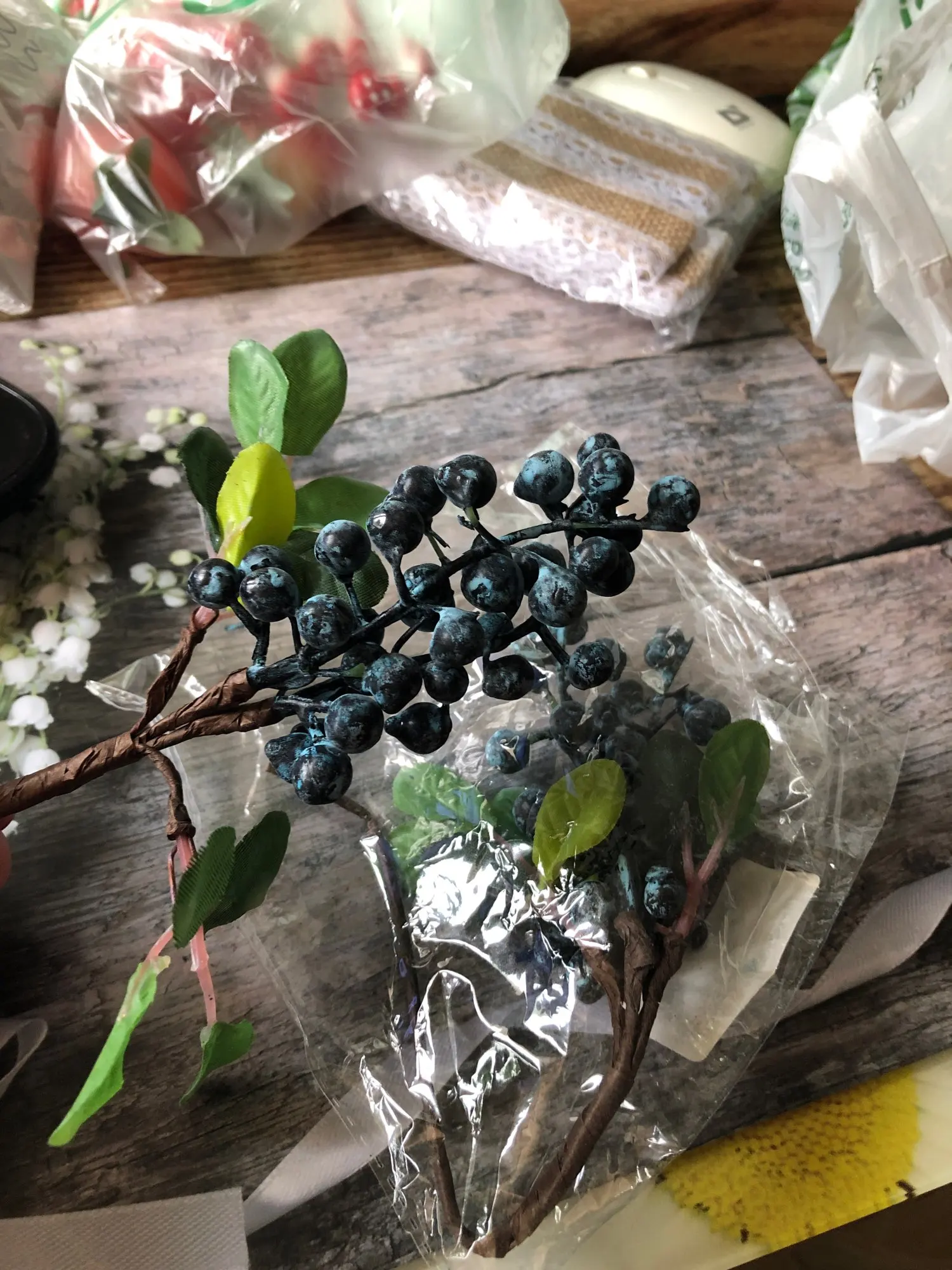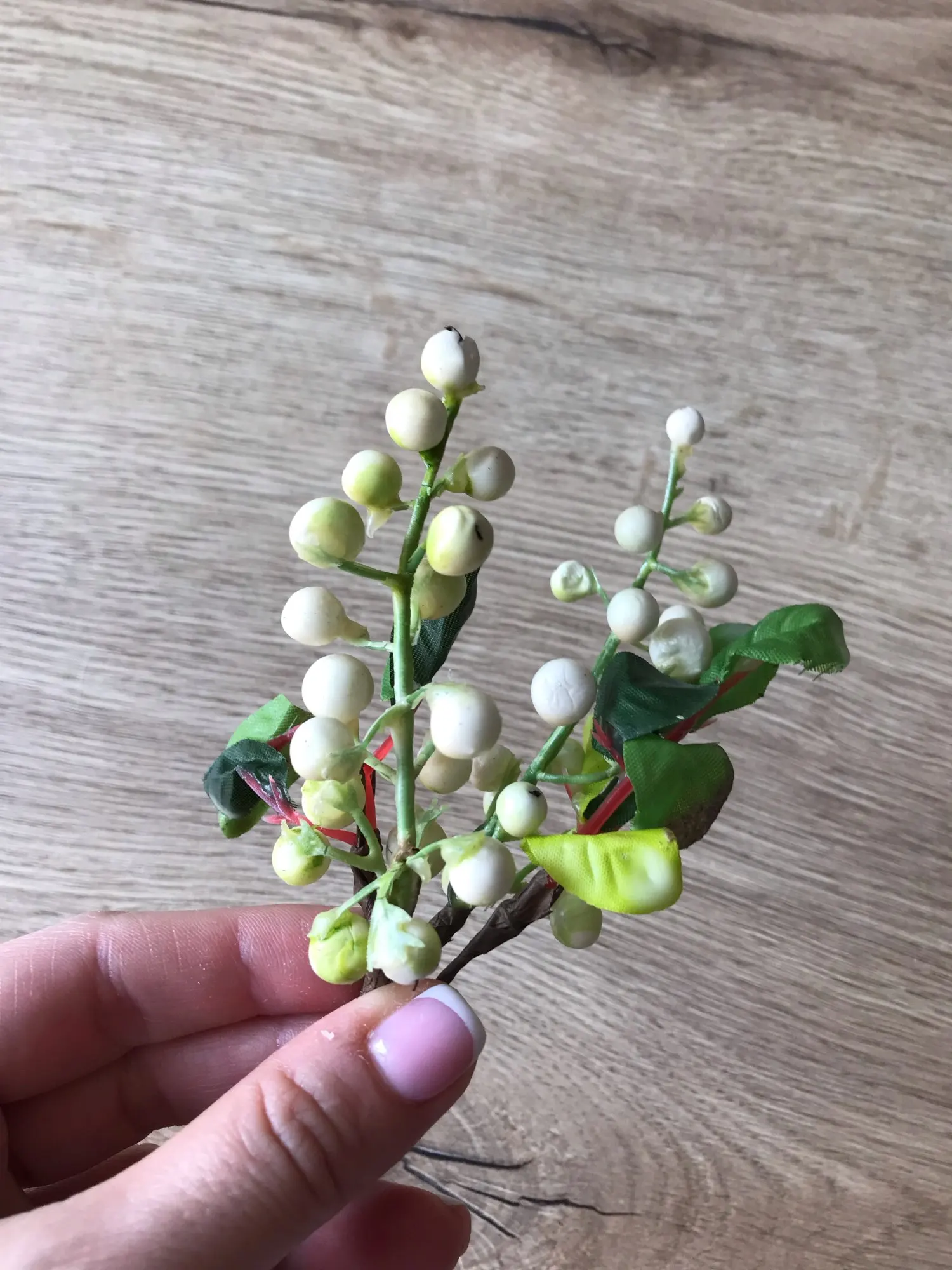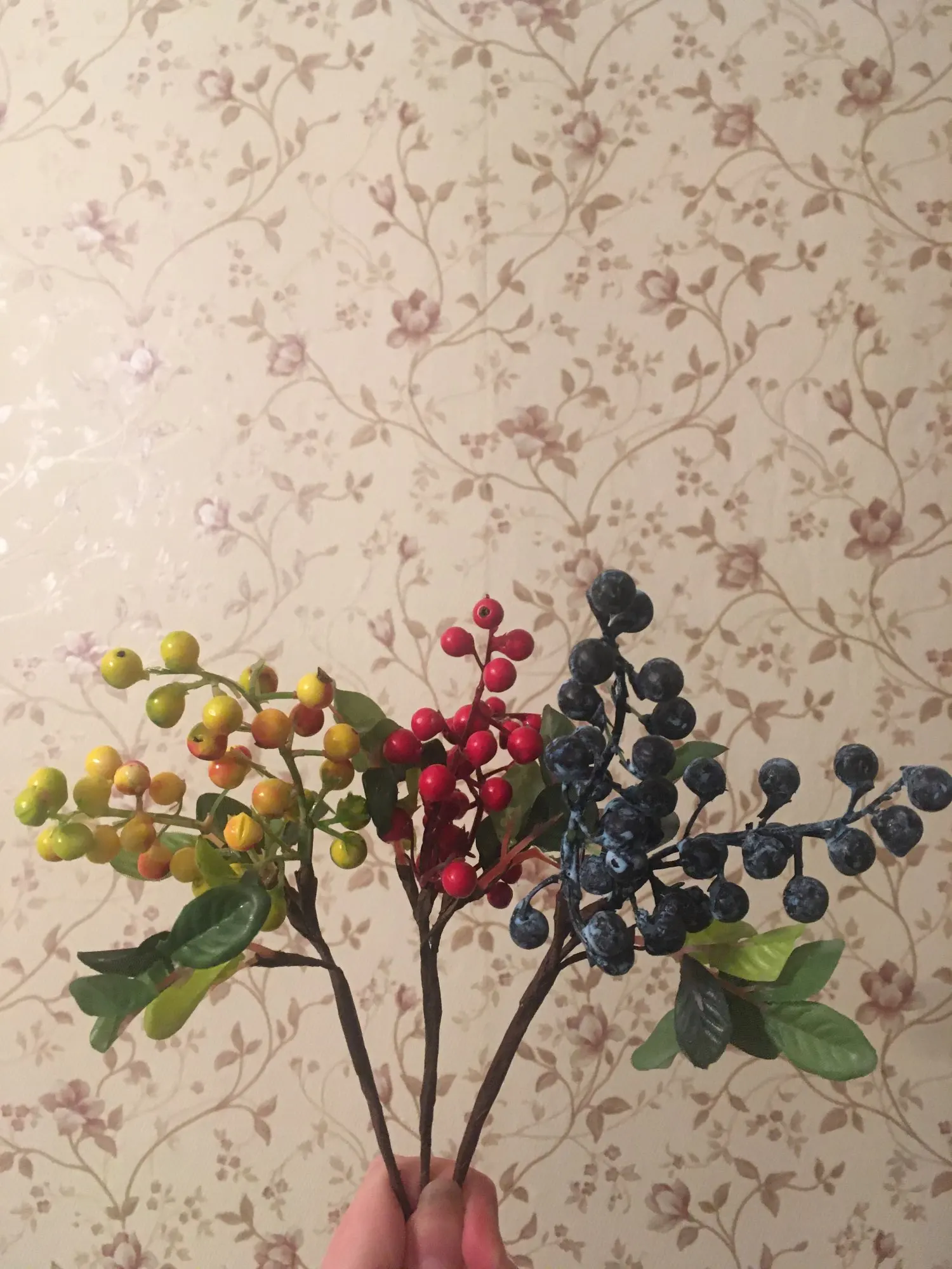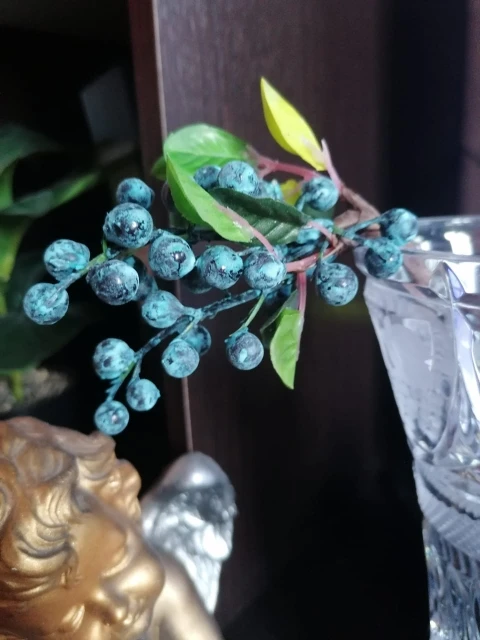 Брала чернику (синяя веточка). Хлипкая, но неплохая, в букете смотрится и немного скрываются нюансы. Обращайте внимание, что реальные фото -это те, что при выборе цвета, это мини фото, а на главных просто прохожие. Я понимала это, но они оказались еще меньше. Длина ок.24 см, ягодки 0,5-0,7 см, чуть меньше заявленных размеров. Пластик не литой, а окрашен в синий цвет, краска частично отсыпается и оголяет пластик; есть клей на листьях, малозаметно; местами ягоды слиплись; сборка специфическая, но не распадается и конструкция в глаза не бросается. Брала у другого продавца аналогичные, там краска больше осыпалась, но веточки идентичны. Вцелом неплохо и мило, пока на них держится краска. Веточки органично дополнили мой букет пионов (фото здесь уже не поместились), пока я довольна, но боюсь их часто двигать, чтоб по-дольше сохранились)) Брать больше не буду подобные, хоть деньги небольшие, но лучше поискать литой цветной пластик. Надеюсь, кому-то мой отзыв станет полезен))