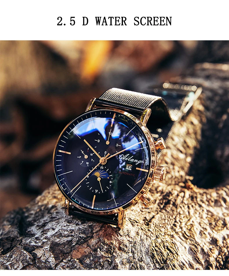 Часы мужские автоматические, брендовые дизайнерские механические минималистские