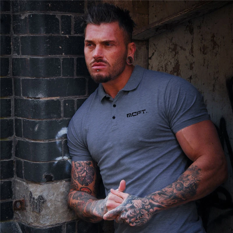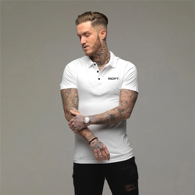 Брендовые мужские рубашки-поло для фитнеса, приталенные, с коротким рукавом, повседневные, хлопковые, модные, летние, дышащие, спортивные, мужские рубашки-поло