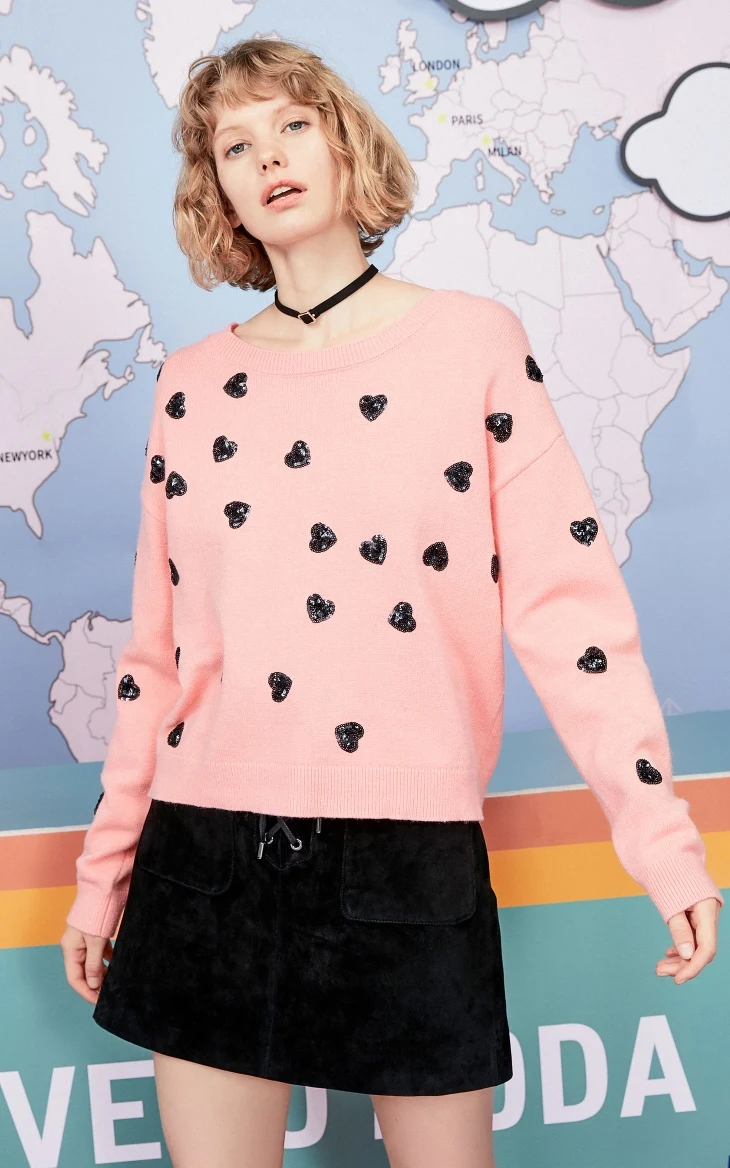 Свитер женский, со спущенными плечами, в форме сердца, 319313562