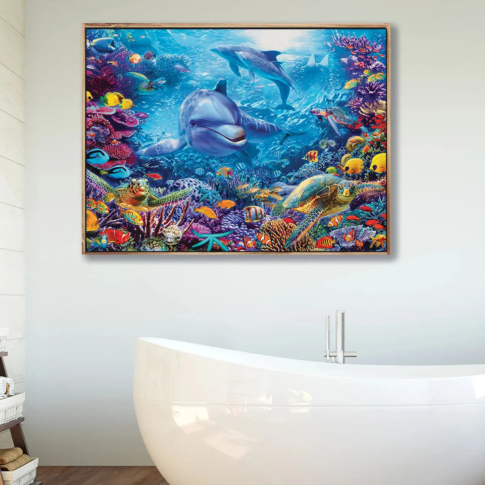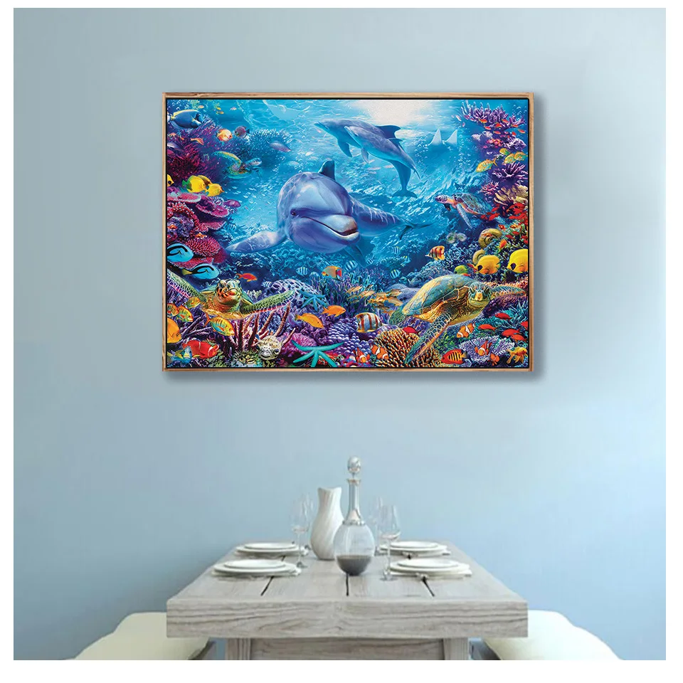 Алмазная вышивка 5D "Дельфин, океан", квадратныекруглые стразы