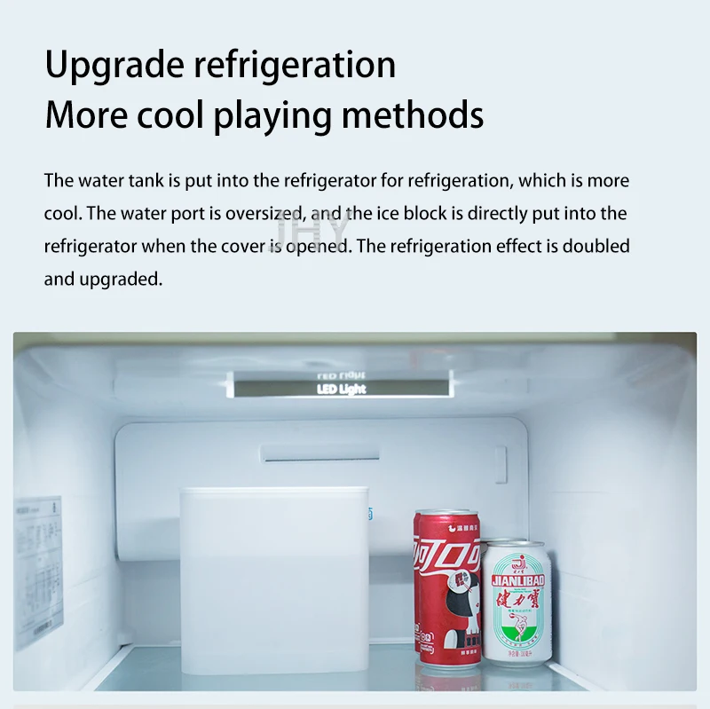 Резервуар для воды помещается в холодильник для охлаждения, что является более прохладным. Порт для воды слишком большой, и лед