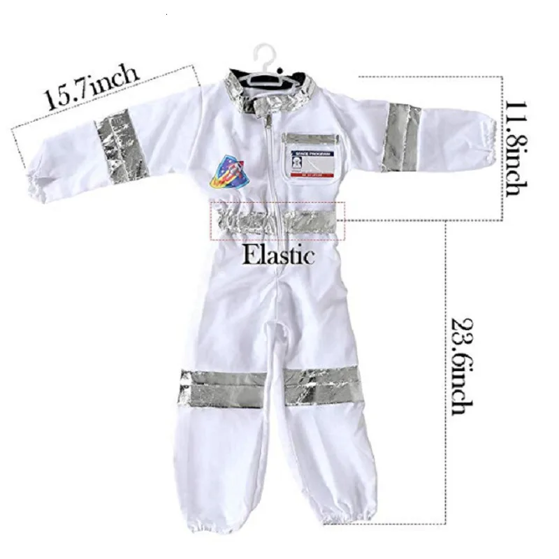 Детский костюм космонавта с бумажной игрой Длина: около 92 см/36,22 дюйма ширина плеч 30 см/11,8 дюйма Материал: хлопковая ткань Подходит для: От 3 до 7 лет возраста, детей в пределах 130 см/51,18 дюйма. Посылка: части верхней части тела, брюки, шляпы, перчатки. Характеристики: Представь, что я космонавт, путешествующий в космосе. Развивайте воображение своего сына и играйте с друзьями.