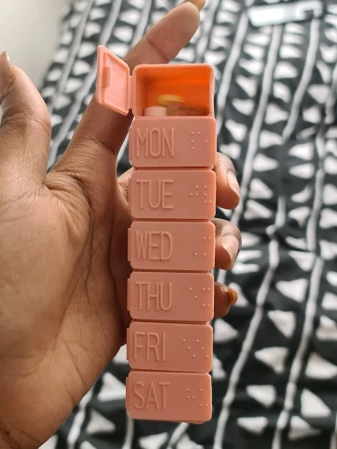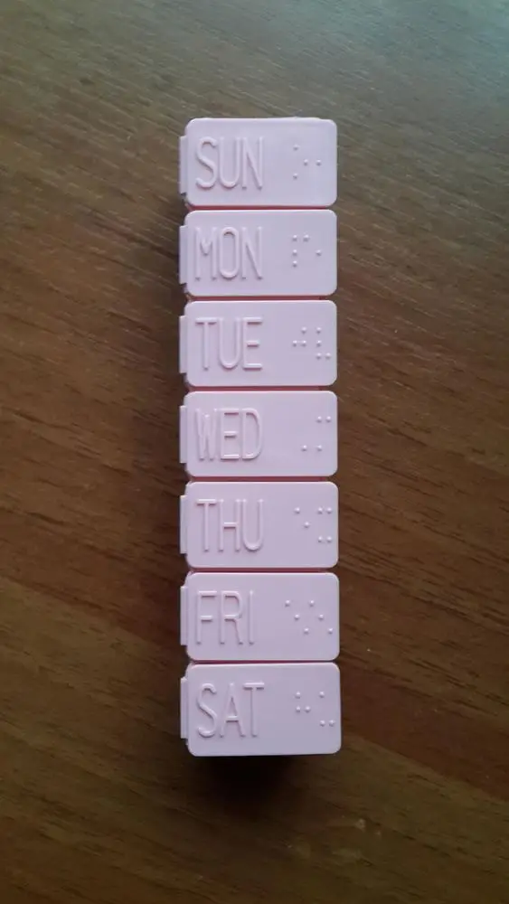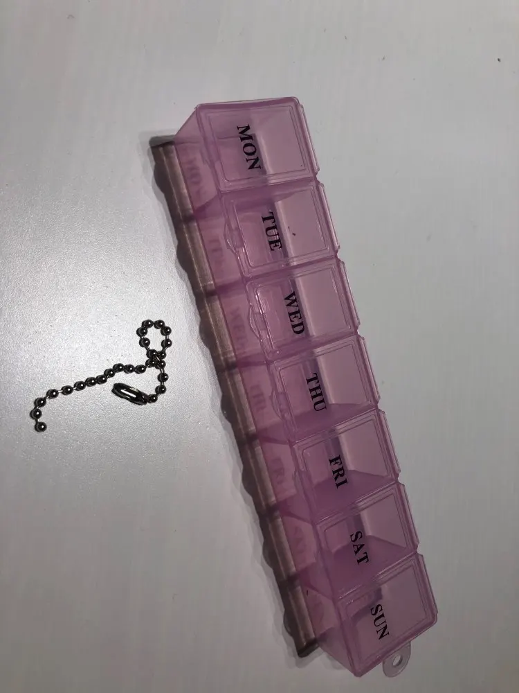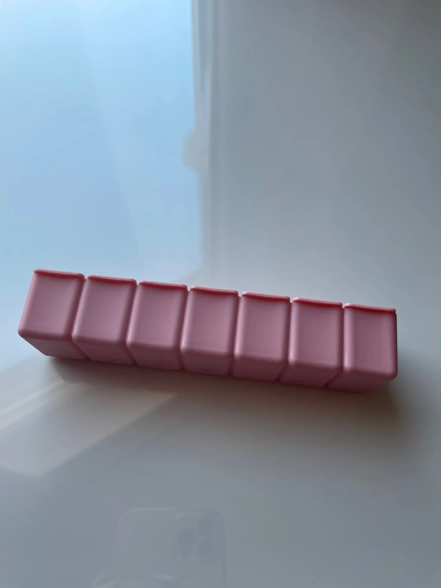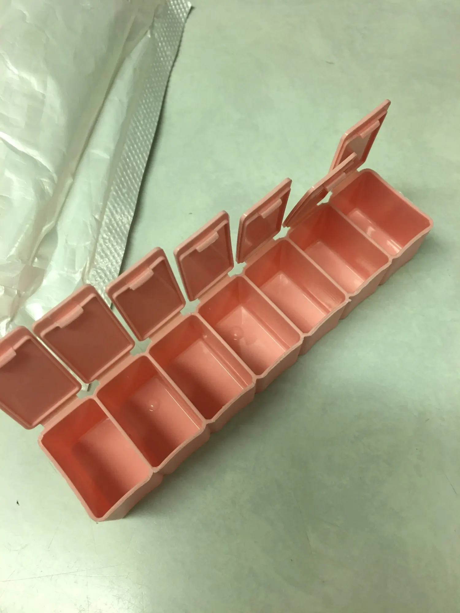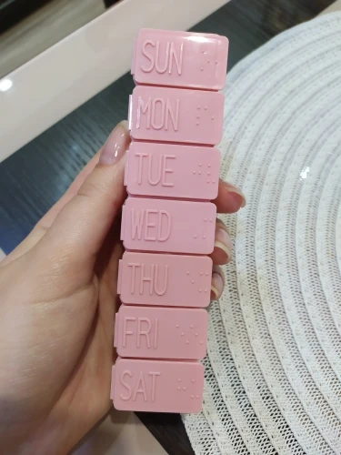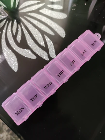 Очень удобная штучка. Уже беру четвертую, разного цвета, хорошо закрывается, розовая, не прозрачная, от света таблетки защищены. Раскладываю таблетки на неделю.