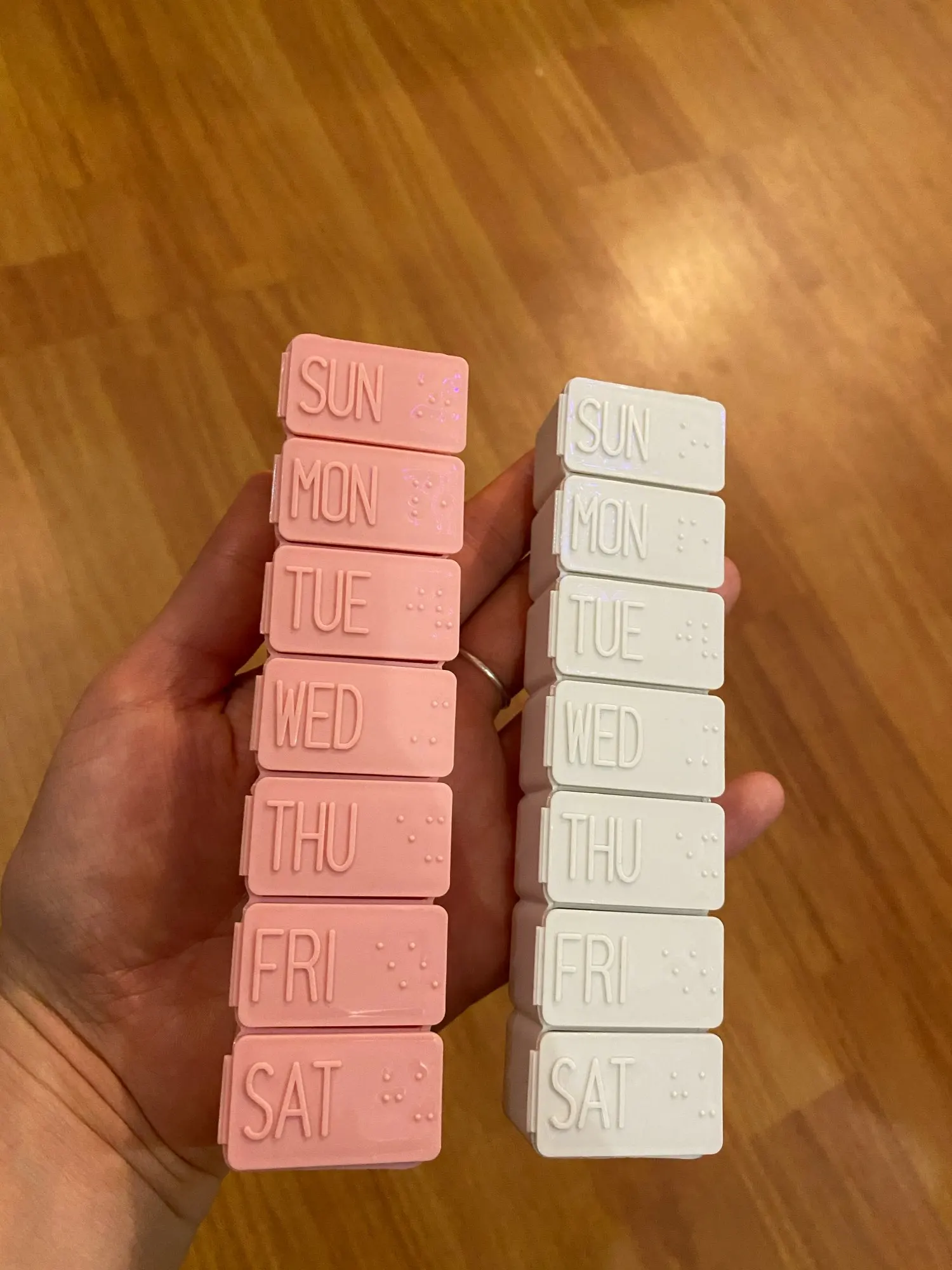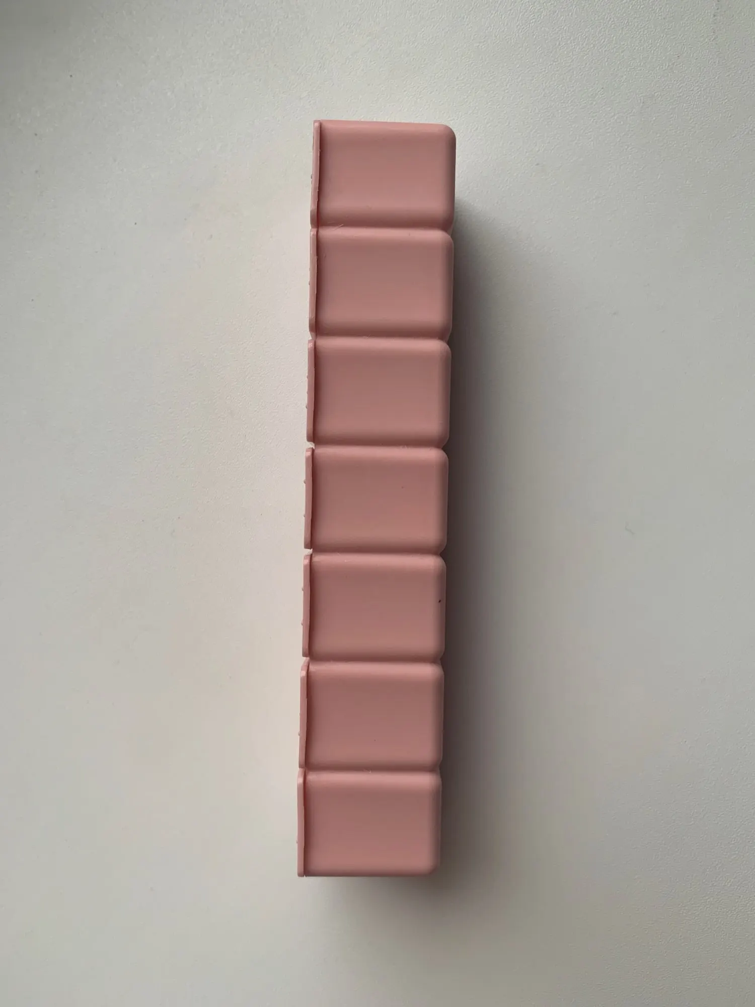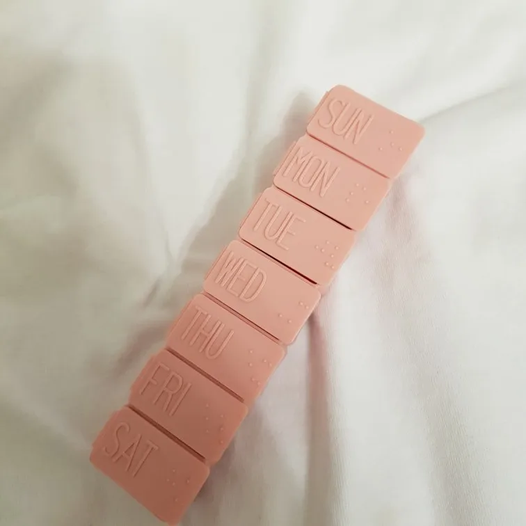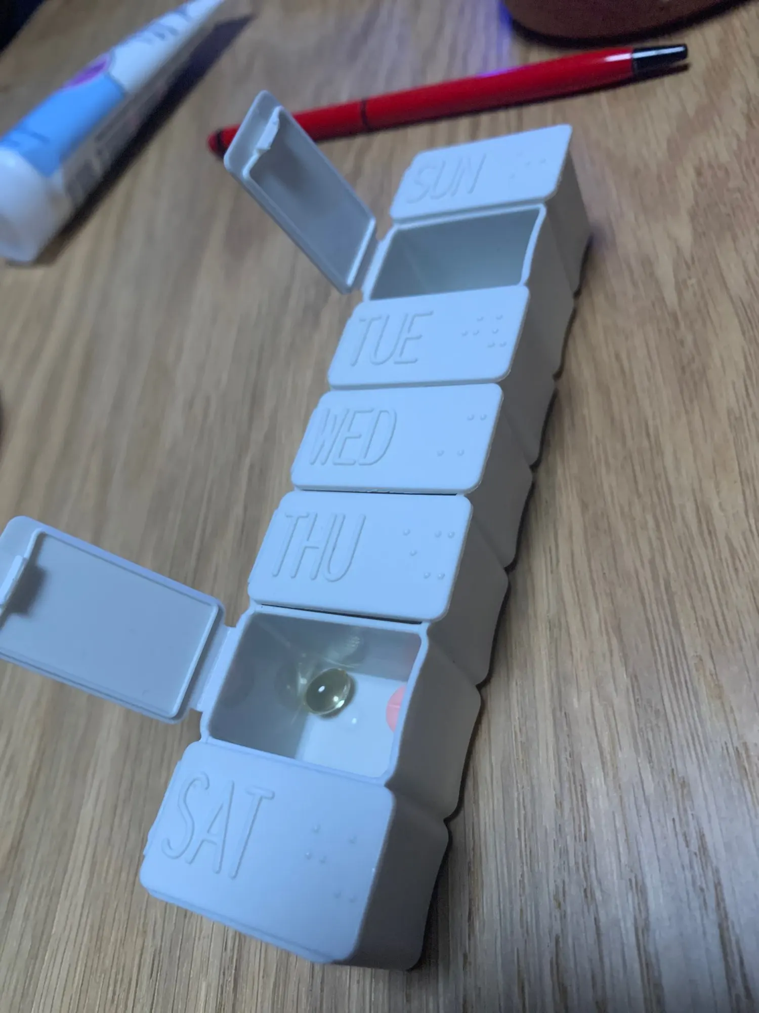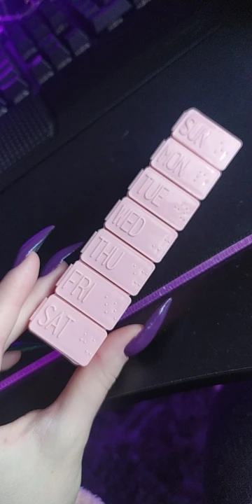 Очень удобная штучка. Уже беру четвертую, разного цвета, хорошо закрывается, розовая, не прозрачная, от света таблетки защищены. Раскладываю таблетки на неделю.