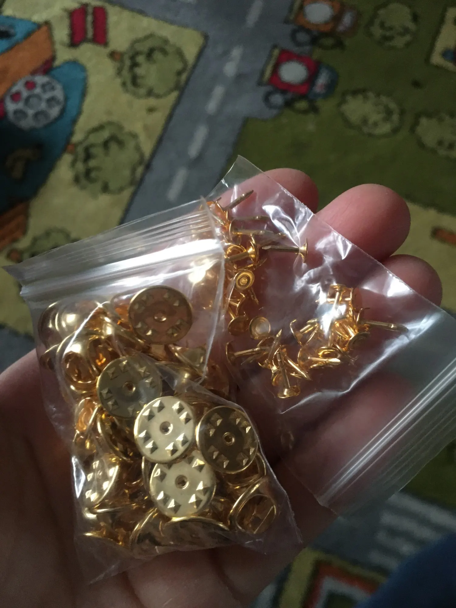 Отличные шпильки! Очень прочный и действительно приятный цвет. Я использую эти булавки для покемона, которые поставляются с резиновыми спинками, так как они бесполезны, и они работают как очарование! Спасибо.