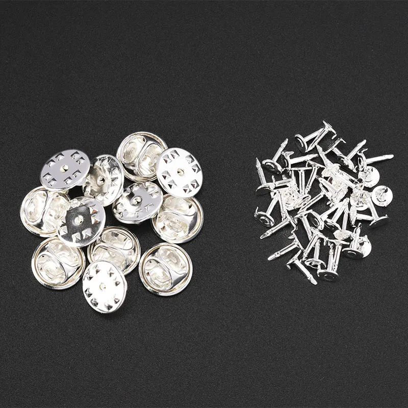 50 компл. Лот, держатель для бейджей, застежка-бабочка, булавка, брошь на спине, клатч, крышка для ухода, галстук для ногтей, задние пробки, украшения из родия