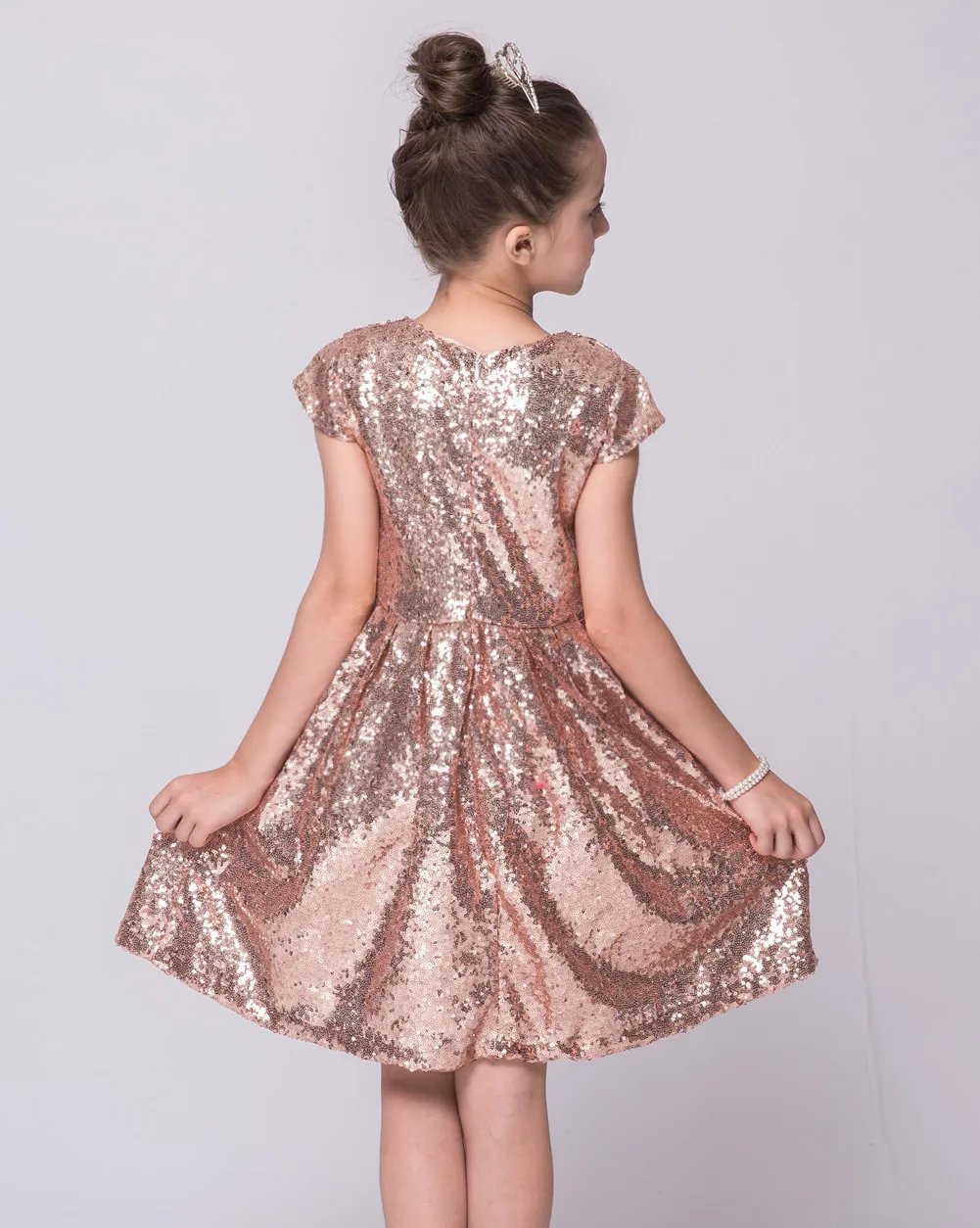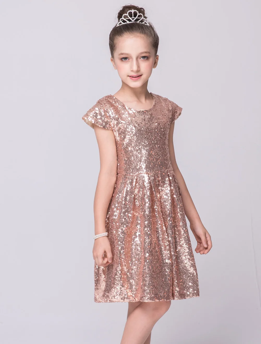 Модное платье для девочек, с блестками, с коротким рукавом, вечерне...