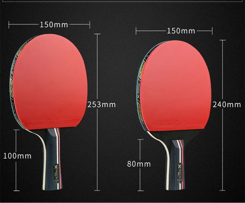 1 ракетка с длинными ручками + 1 ракетка с короткими ручками + 3 ракетки с тремя звездами 40 + шарики из АБС-пластика + сумка для настольного тенниса.