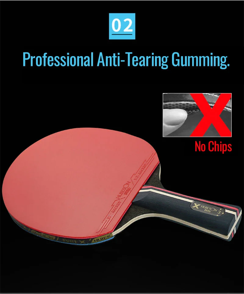 1. Изготовлен из 5 слоев прочной древесины венге + 2 слоя лезвия из углеродного волокна, хорошего контроля и большой мощности.