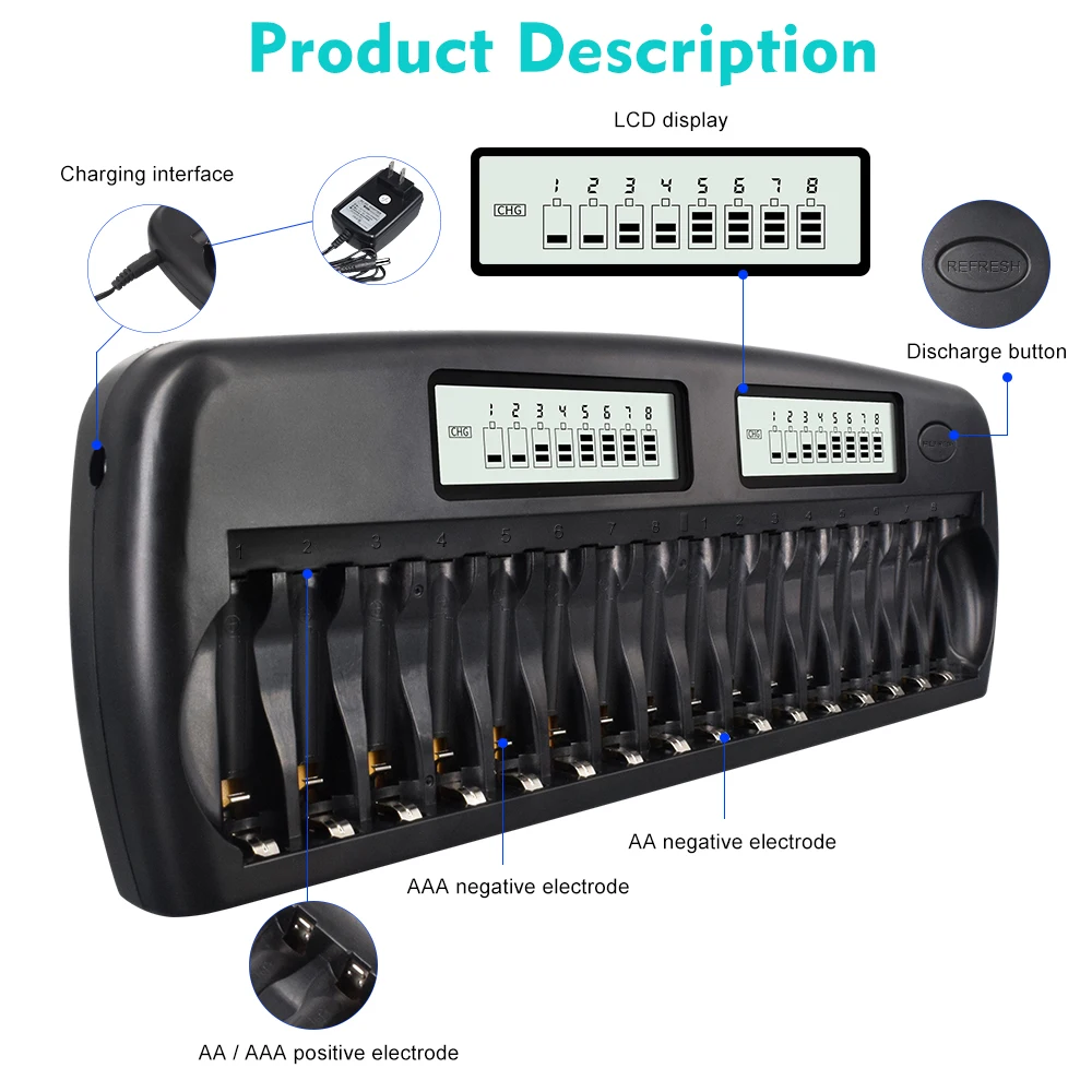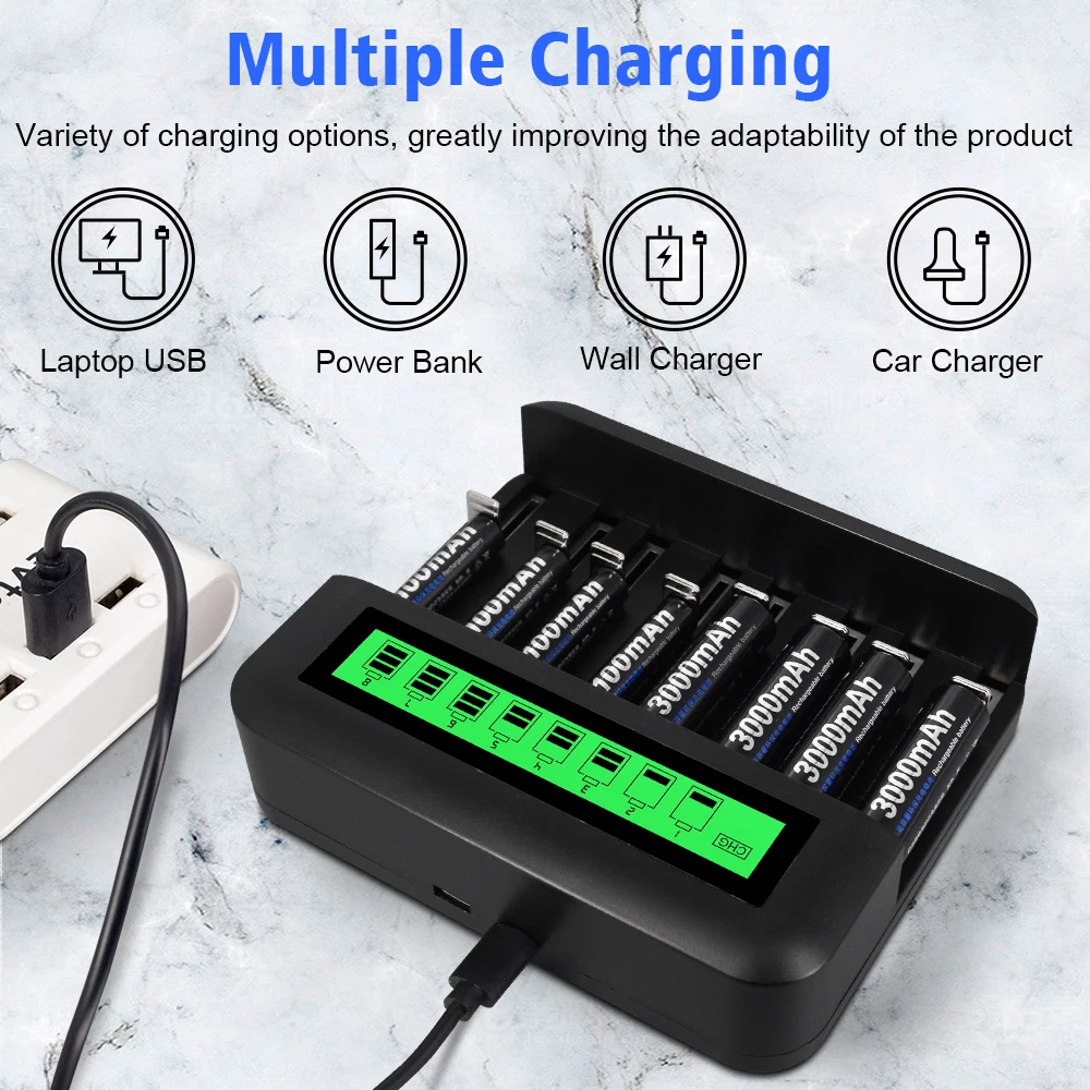 Интеллектуальное зарядное устройство с ЖК-дисплеем для аккумуляторов 1,2 В AA AAA быстрое зарядное устройство для аккумуляторов Ni-MH AA AAA