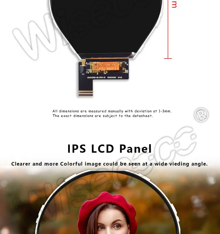 Wisecoco 3,4 дюймов 800*800 круглый дисплей IPS ЖК-панель PCAP сенс...