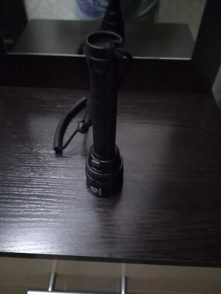 Товар пришёл с опозданием на 5 дней, товар соответствует описанию, сделан качественно, выглядит хорошо, в воде ещё не тестировал, хотя знакомый погружался с таким на 20 метров и фонарь не потёк.