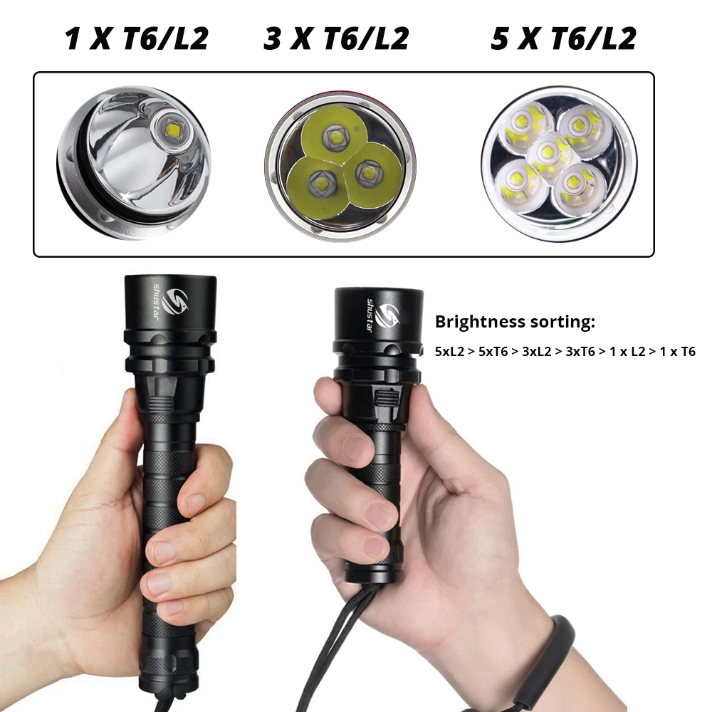 IP68 мощный фонарь для дайвинга самый высокий водонепроницаемый профессиональный фонарь для дайвинга с противоскользящей веревкой для использования 5 супер ярких лампочек