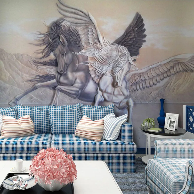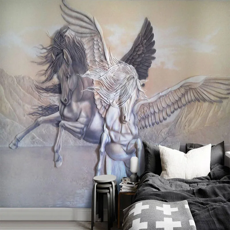 Настенные 3D-обои на заказ, рельефный Настенный декор с изображением ангела, лошади, гостиной, спальни, кабинета, креативный домашний декор, наклейки на стену 3 D