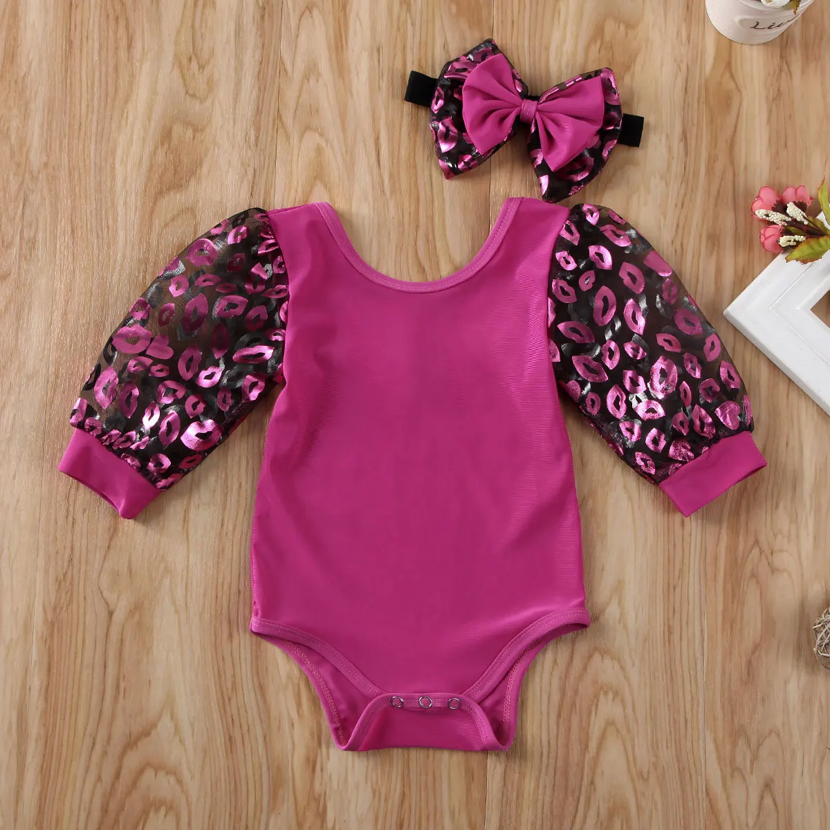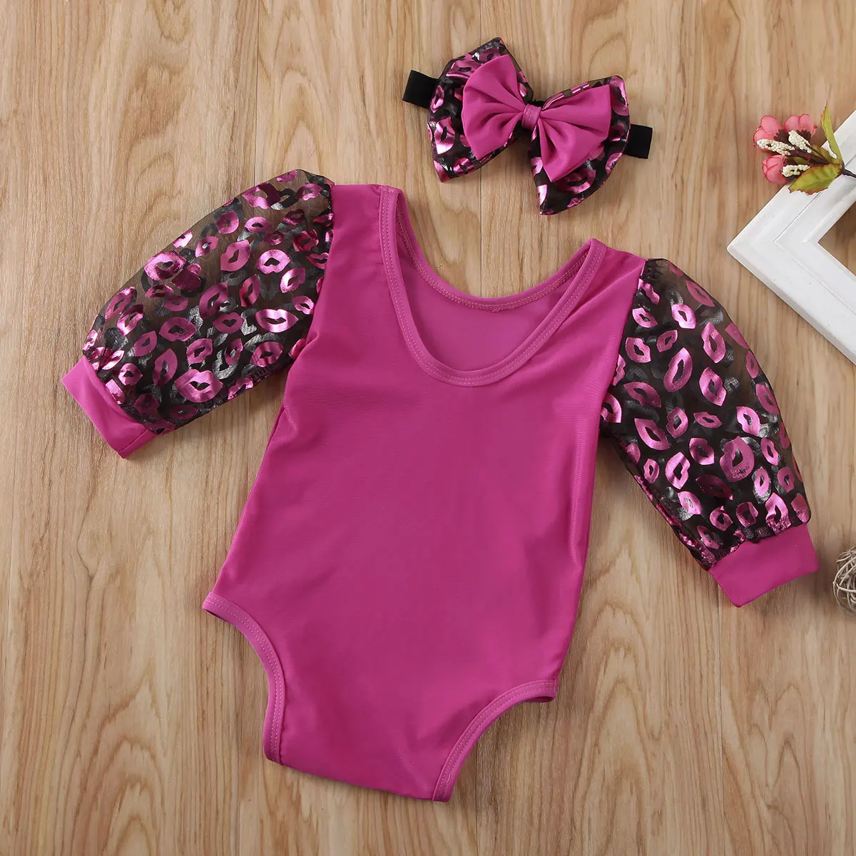 Комбинезоны для новорожденных девочек 0-18 месяцев кружевные с длинными рукавами-фонариками и принтом губ милый комбинезон наряд