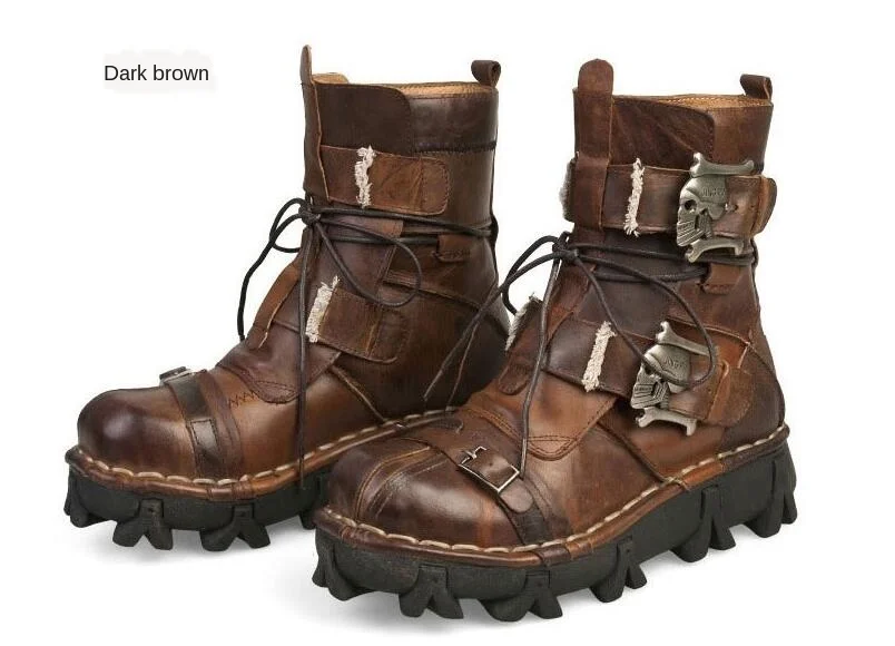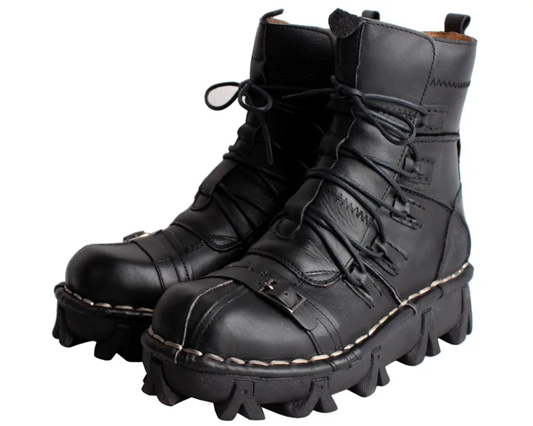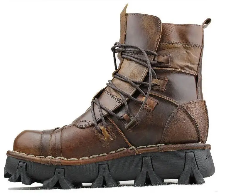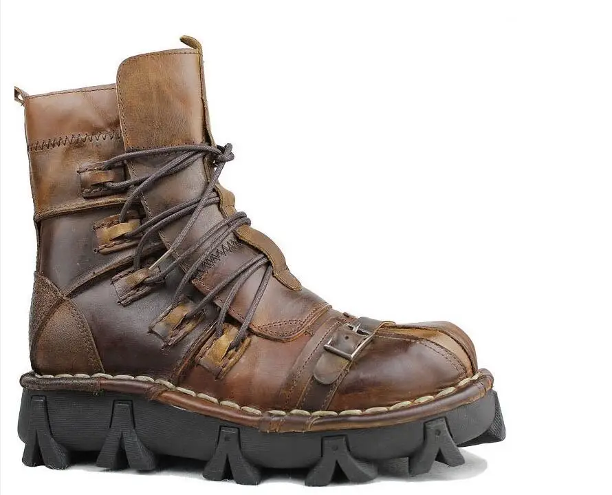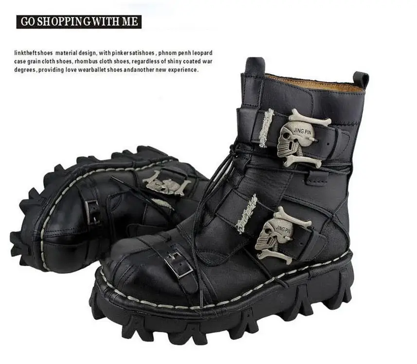 Мужские Винтажные уникальные мотоциклетные ботинки из натуральной кожи; Паровые ботинки в стиле панк; Военные военные ботинки с черепом; Мужские Базовые ботинки на платформе