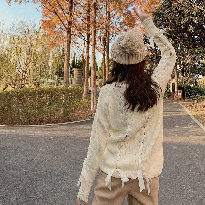 Свитер с круглым вырезом и бантом, мягкий японский свитер принцессы в стиле Лолиты, T1842