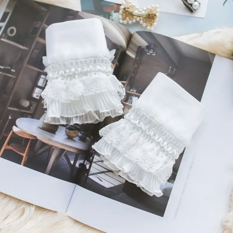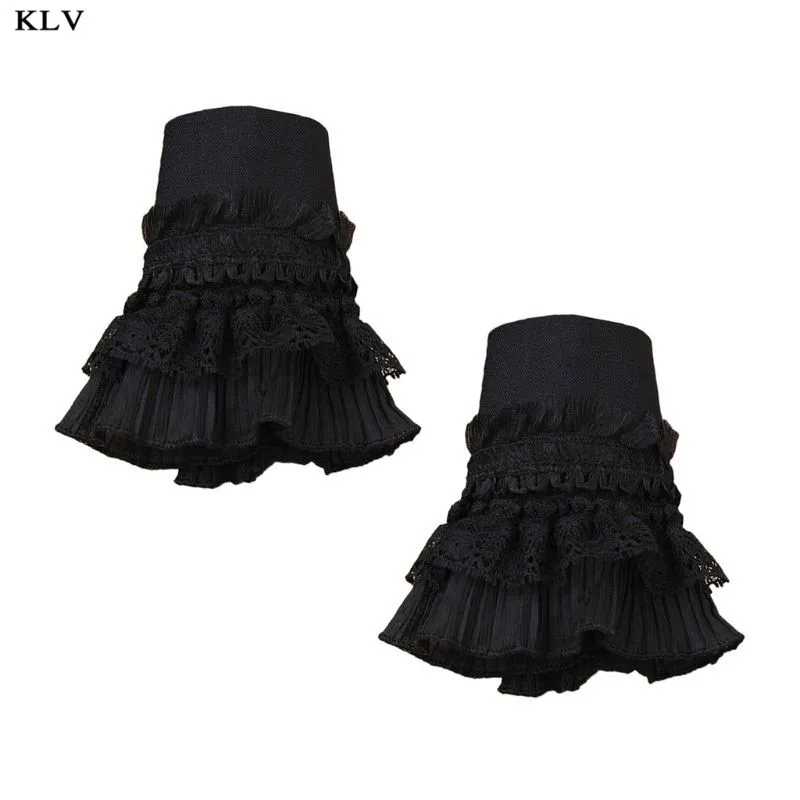 Готический Ретро черный съемный рукав Ложные манжеты Многослойные оборки кружева пэчворк Лолита принцесса свитер декоративный браслет