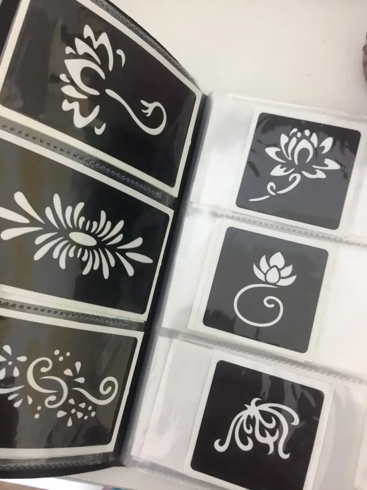 Трафарет для татуировок, 108 шт., альбом для женщин и детей, трафарет для рисования, Маленький милый цветок, бабочка, мультяшный трафарет для татуировок хной